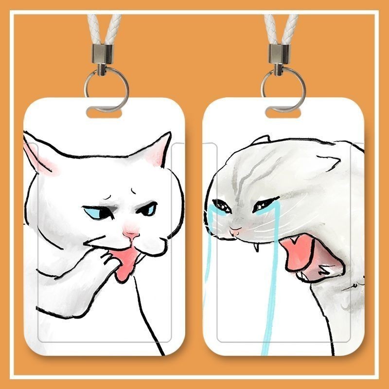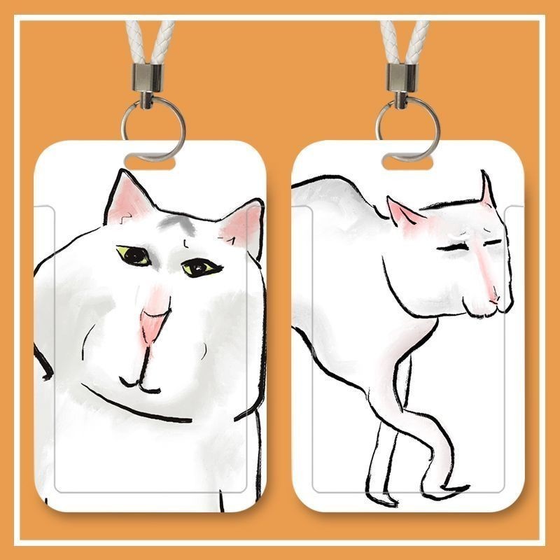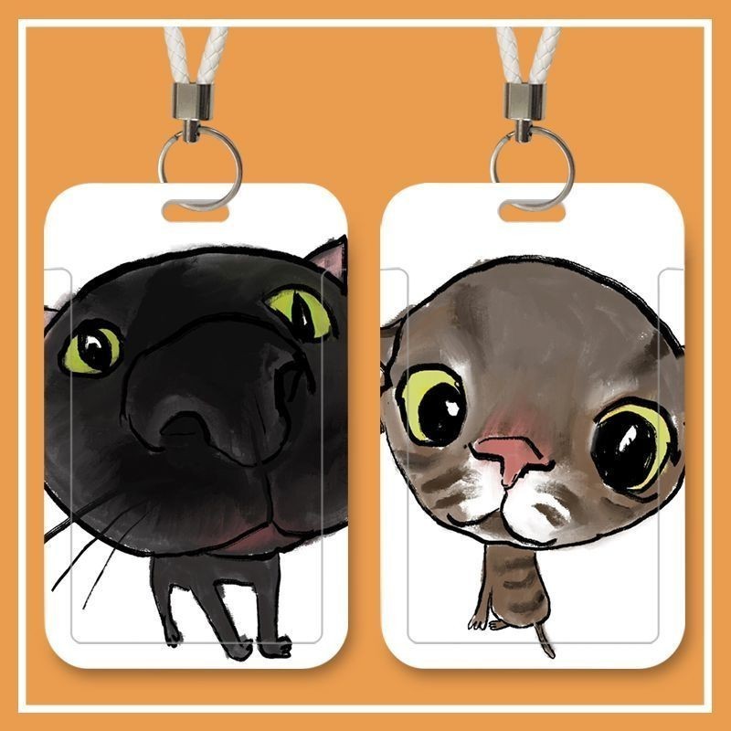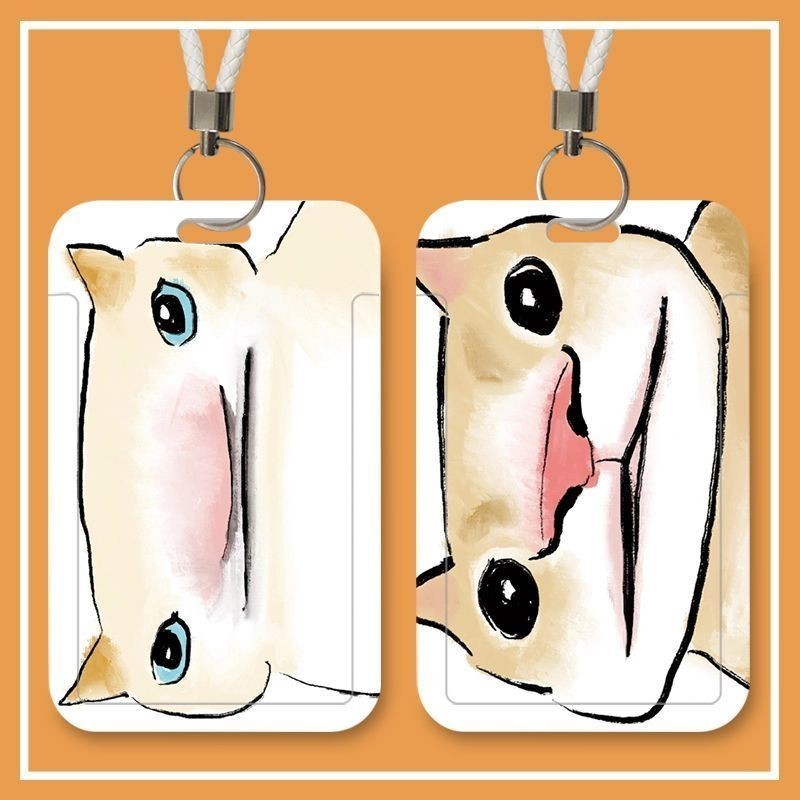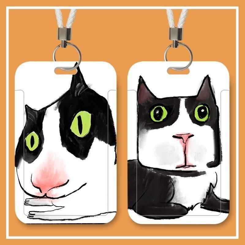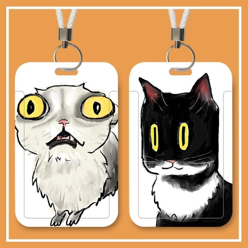 อิน น่ารักแมวตลกติดบัตรหนีบบัตรคู่ปกบัตรประตูคีย์การ์ดวิทยาเขตนักเรียนบัตรประจําตัวเชือกเส้นเล็กยาวรถบัสทํางานดัด รหัส ฝาครอบป้องกัน