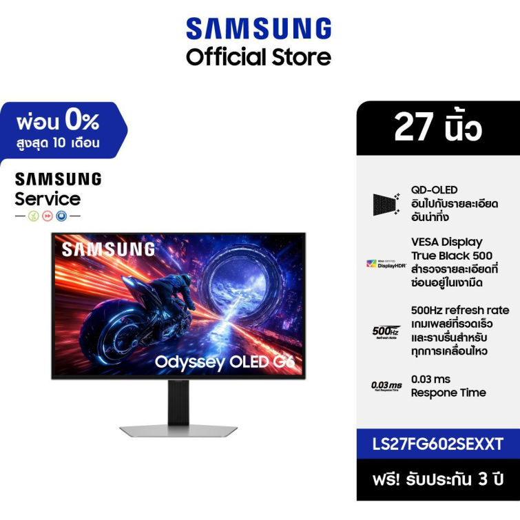 SAMSUNG 27″ Odyssey OLED G6 G60SF QHD 500Hz Gaming Monitor รุ่น LS27FG602SEXXT