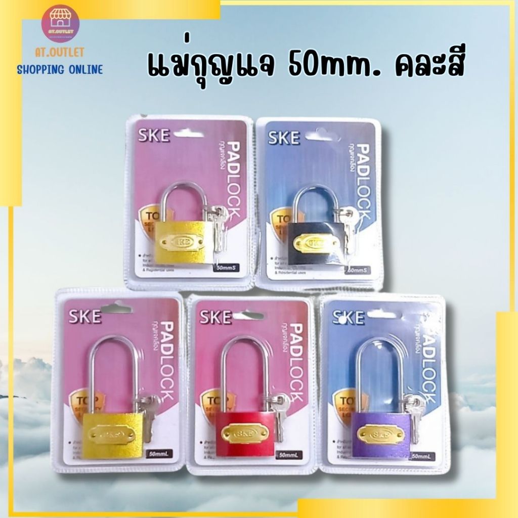 at.outlet กุญเเจ กุญเเจล็อคประตู เเม่กุญเเจ แม่กุญแจ สีเงิน สีทอง ระบบล๊อคลูกปืน 2 ข้าง ขนาด 50mm. ทั้งคอสั้นและคอยาว สามารถเลือกได้ตามความต้องการของลูกค้า