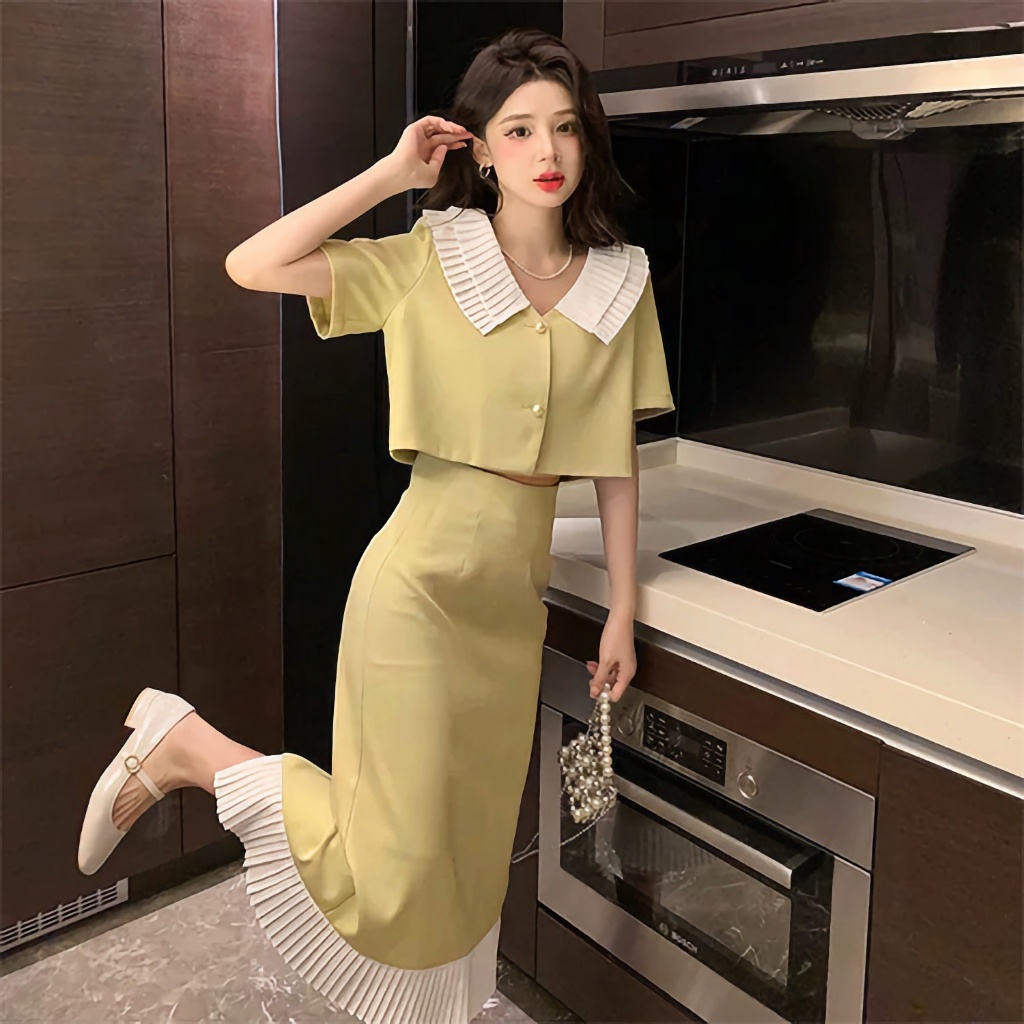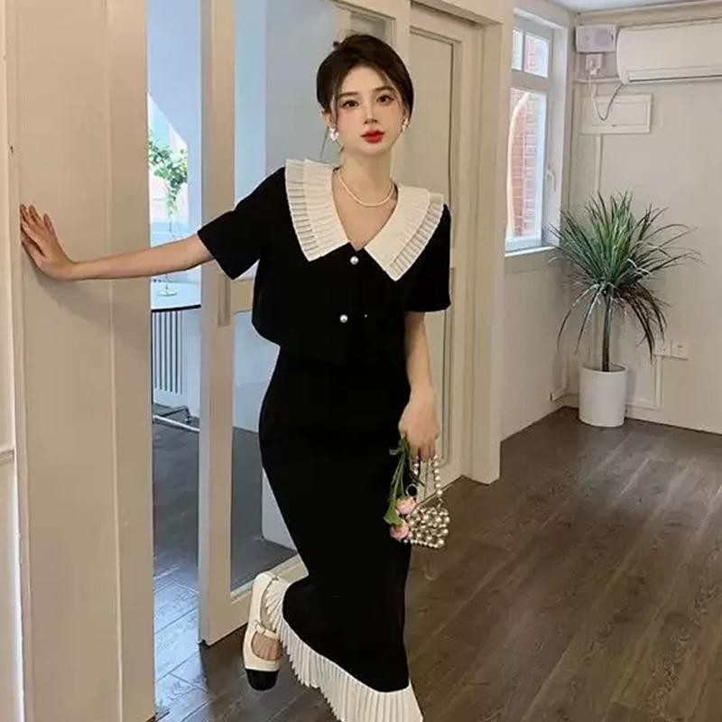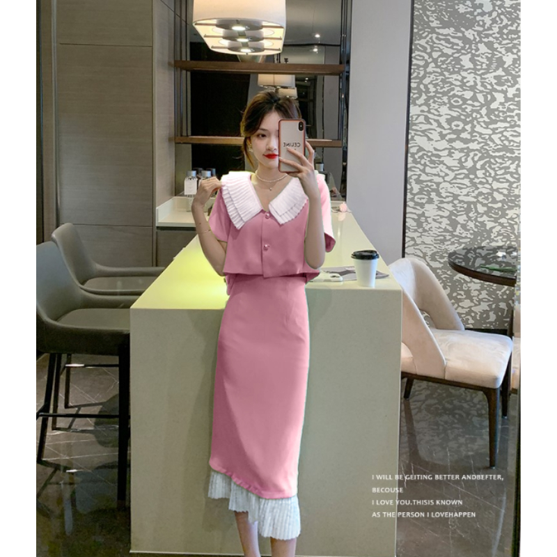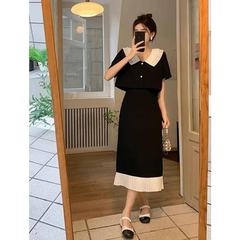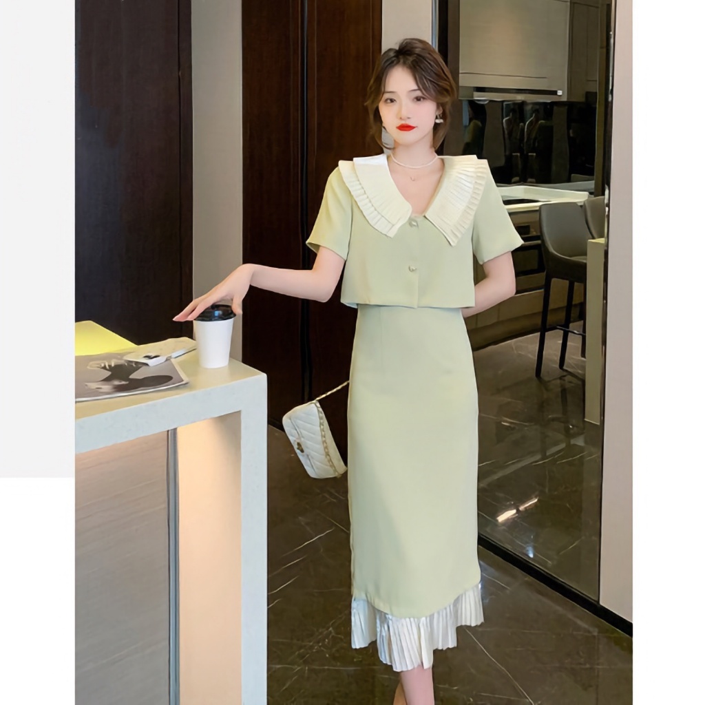 ชุดเซต เสื้อสูทแขนสั้น + กระโปรงยาวชายระบาย ชุดสาวอวบ ชุดออกงาน ใส่เที่ยว ชุดใส่ทำงาน ใส่สบาย เรียบง่าย ซักง่ายยับยาก