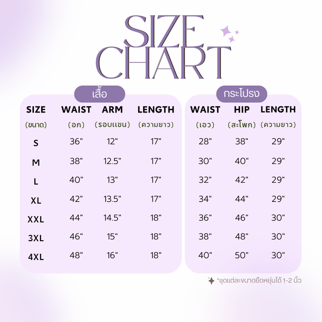 | Model | สีชมพู, S, สีชมพู, M, สีชมพู, L, สีชมพู, XL, สีชมพู, XXL, สีชมพู, 3XL, สีชมพู, 4XL, สีดำ, S, สีฟ้า, S, สีฟ้า, M, สีฟ้า, L, สีฟ้า, XL, สีฟ้า, XXL, สีฟ้า, 3XL, สีฟ้า, 4XL, สีดำ, M, สีดำ, 4XL, สีดำ, L, สีดำ, XL, สีดำ, XXL, สีดำ, 3XL, สีเหลือง, S, สีเหลือง, M, สีเหลือง, L, สีเหลือง, XL, สีเหลือง, XXL, สีเหลือง |