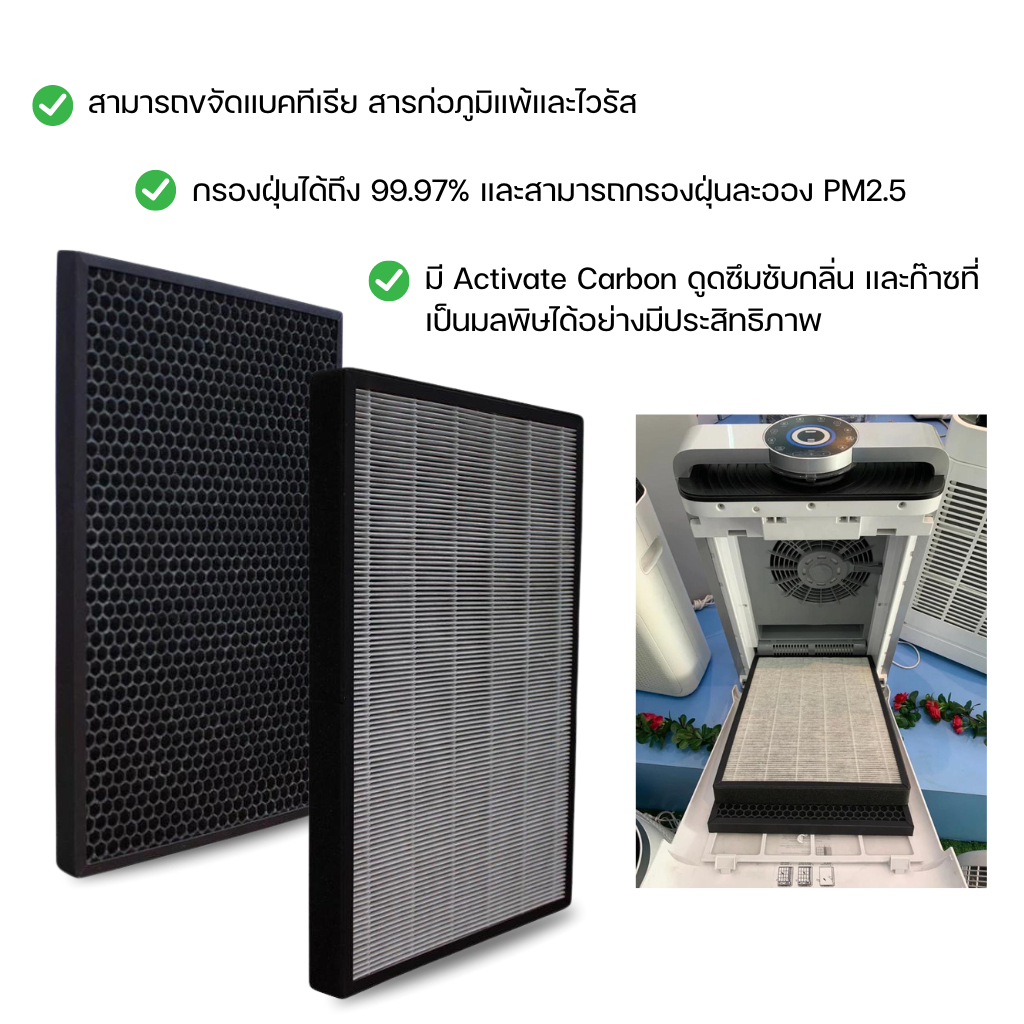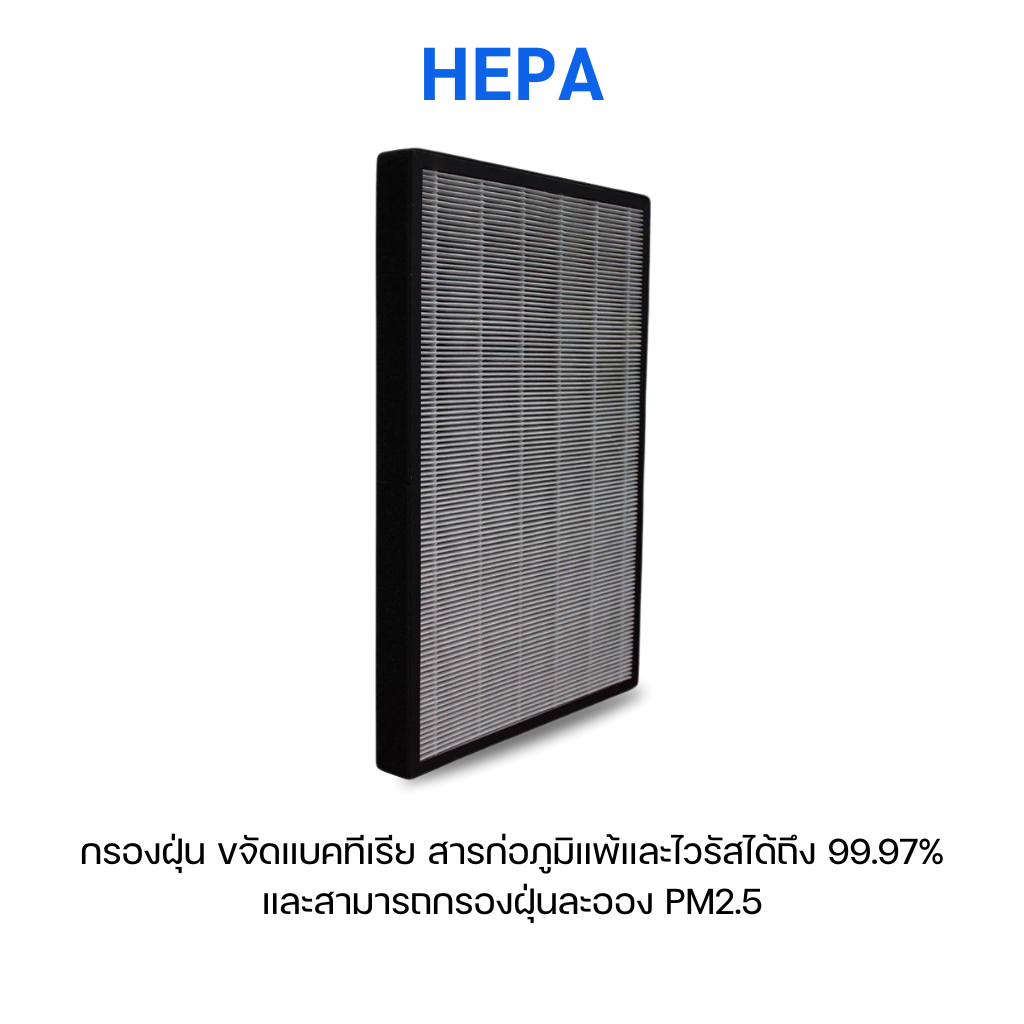 ✅ แผ่นกรอง HEPA ช่วยกำจัดสารก่อภูมิแพ้ เช่น ไรฝุ่น และเกสรดอกไม้ ด้วยประสิทธิภาพการกรองฝุ่นขนาดเล็กได้ถึง 0.3 ไมครอน