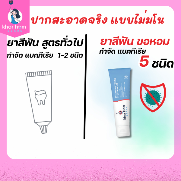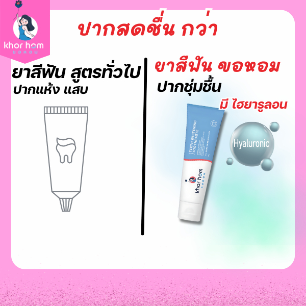 ยาสีฟันขอหอม – ปรับสารสกัดจากสมุนไพรเกาหลี 7 ชนิด ที่ช่วยทำให้ปากหอม ลดกลิ่นปาก พร้อม ปรับกลิ่นยาสีฟันให้หอมเป็นเอกลักษณ์ และยังมีส่วนผสมของ ผงขัดฟันนำเข้าจากสหรัญอเมริกา ช่วยขัดฟัน ขัดคราบพลัค สิ่งสกปรกบนฟันให้ฟันขาวสะอาดขึ้นครั้งแรกที