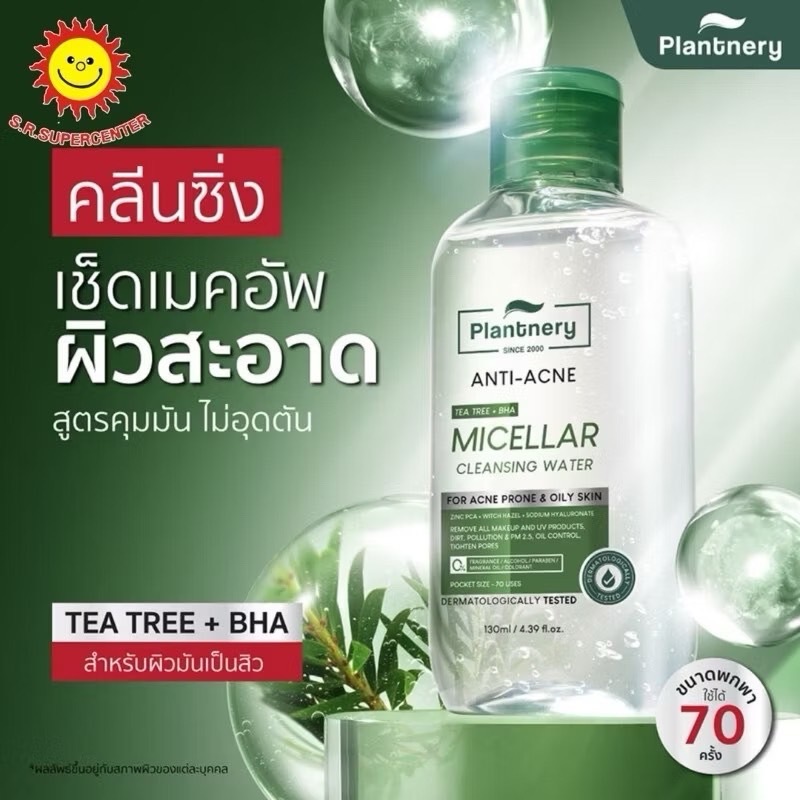 แพลนท์เนอรี่ แอคเน่ ไมเซล่า คลีนซิ่ง วอเตอร์ คลีนซิ่ง ทีทรี ไมเซล่า ผิวสะอาดใส สลายเมคอัพหมดจด ไม่อุดตัน สำหรับผิวมันเป็นสิว คลีนซิ่งเช็ดทำความสะอาดเครื่องสำอาง เนื้อสัมผัสน้ำ