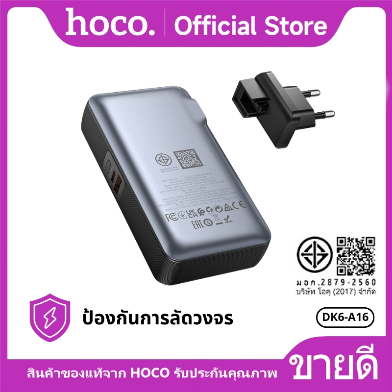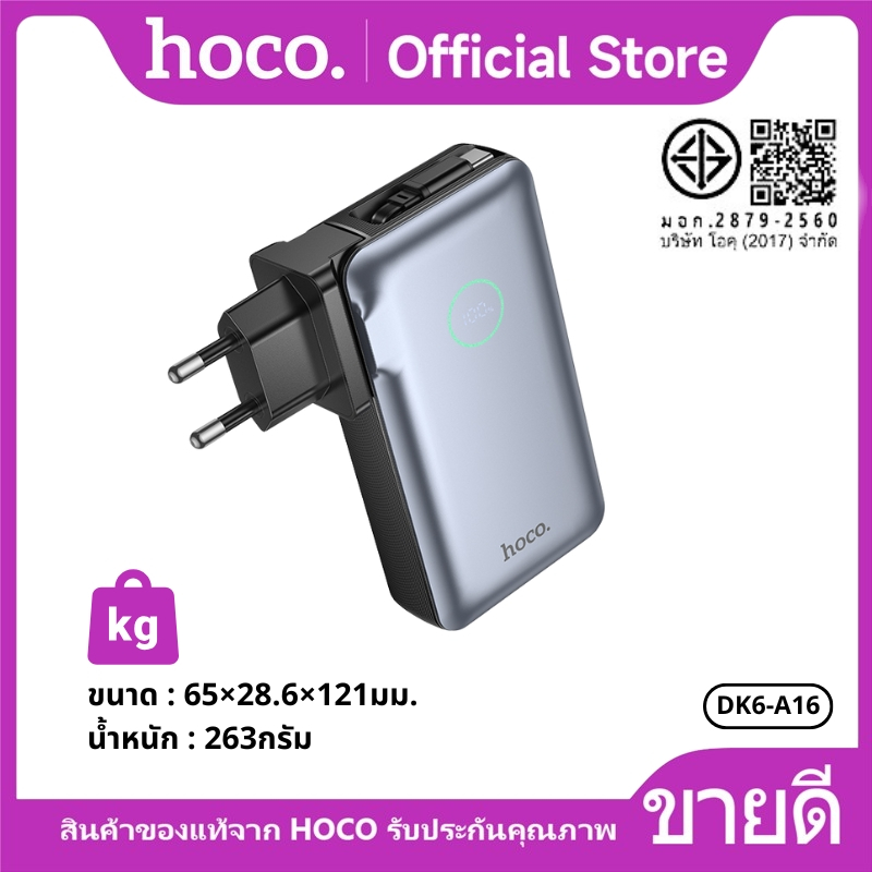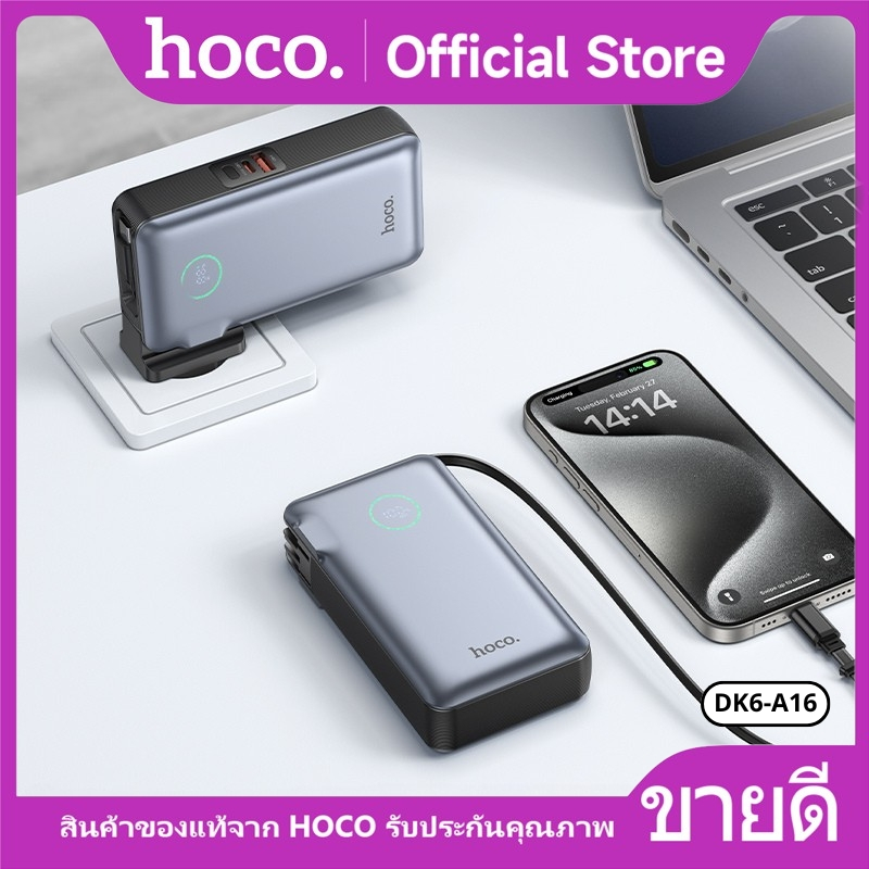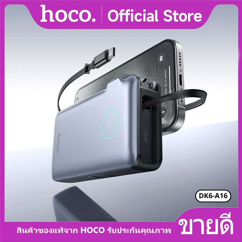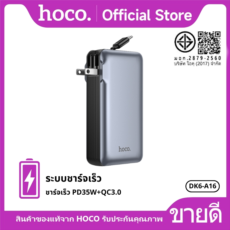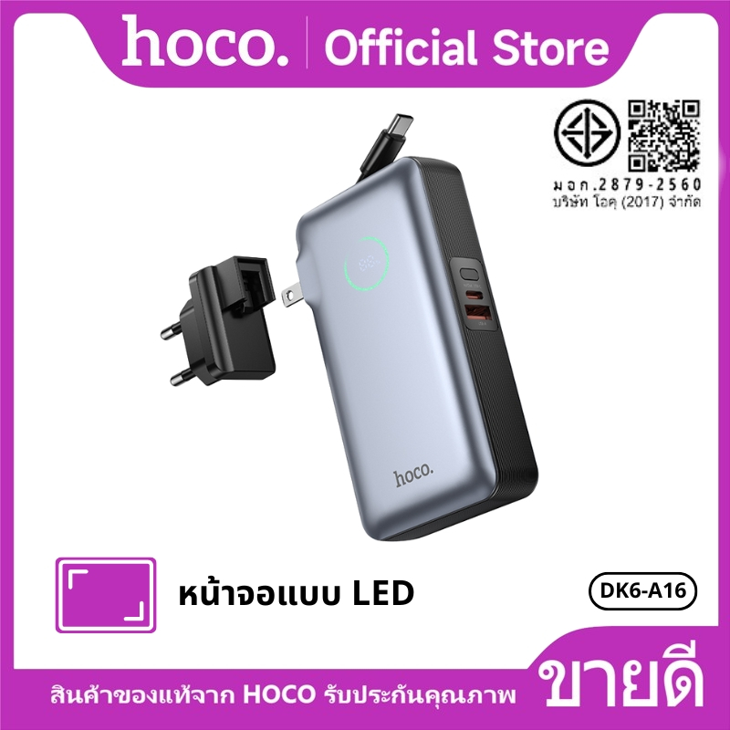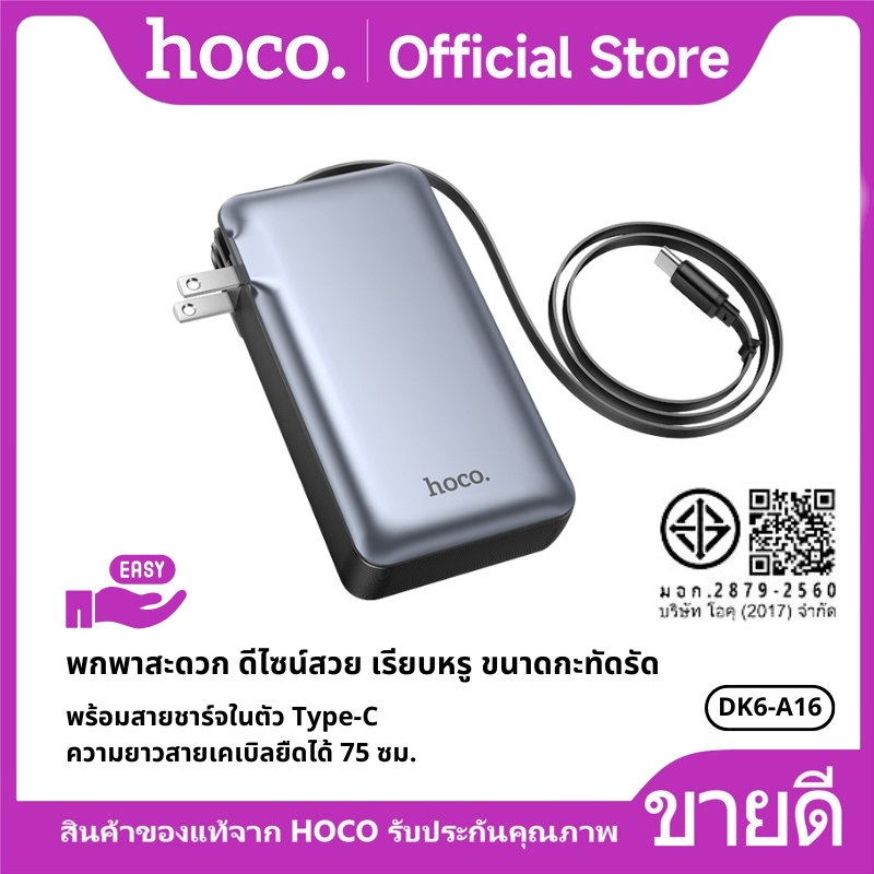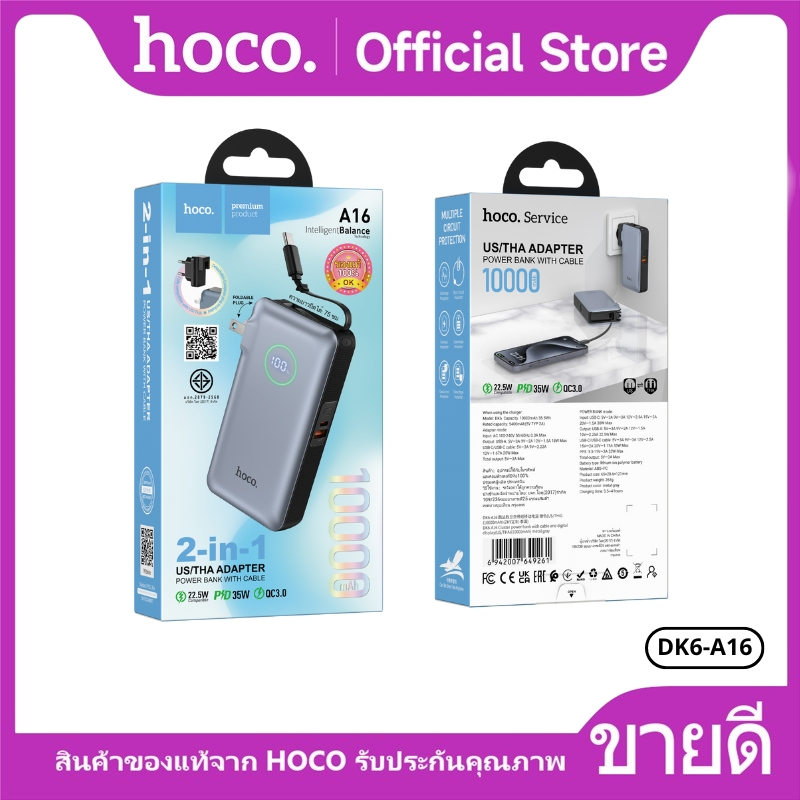 พาวเวอร์แบงค์ 2in1 ชาร์จเร็ว ความจุ 10000mAh พร้อมอแดปเตอร์แปลง 2หัว มีสายชาร์จในตัว HOCO DK6-A16