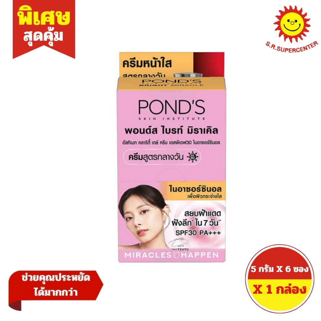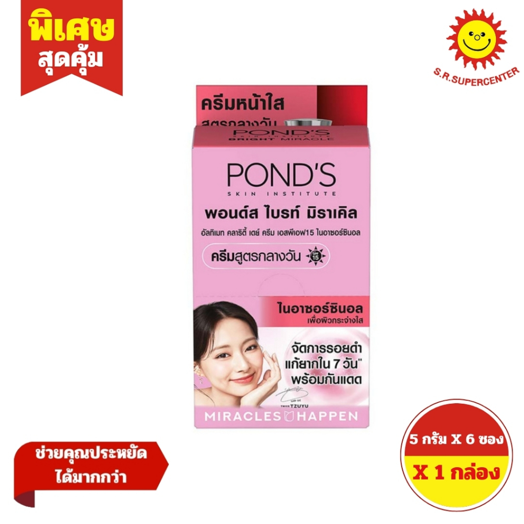 (6ซอง/กล่อง) Pond’s พอนด์ส ไบร์ท มิราเคิล อัลทิแมท คลาริตี้ เดย์ครีม SPF15 ครีมสูตรกลางวัน ไนอาซอร์ซินอล