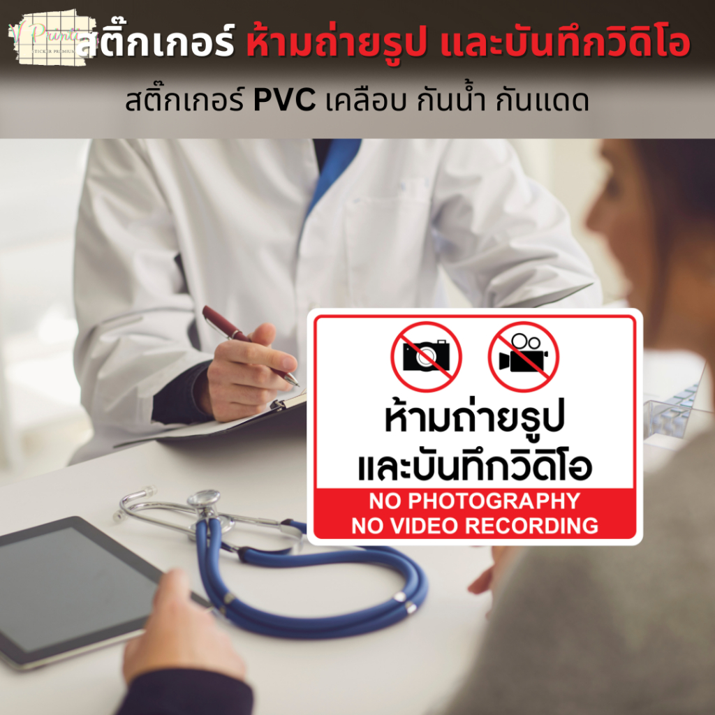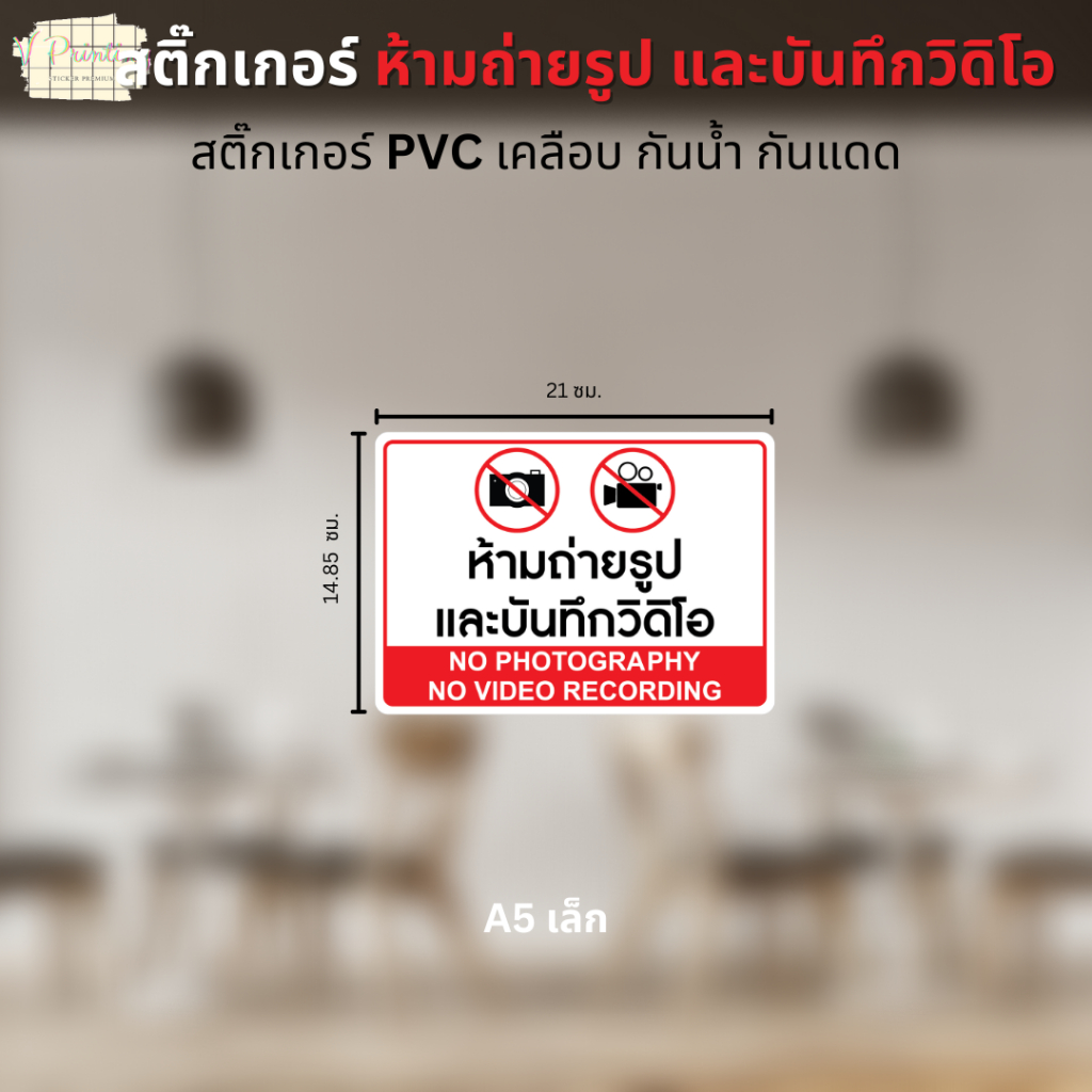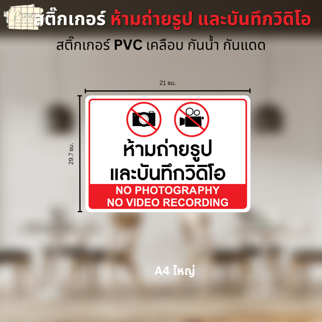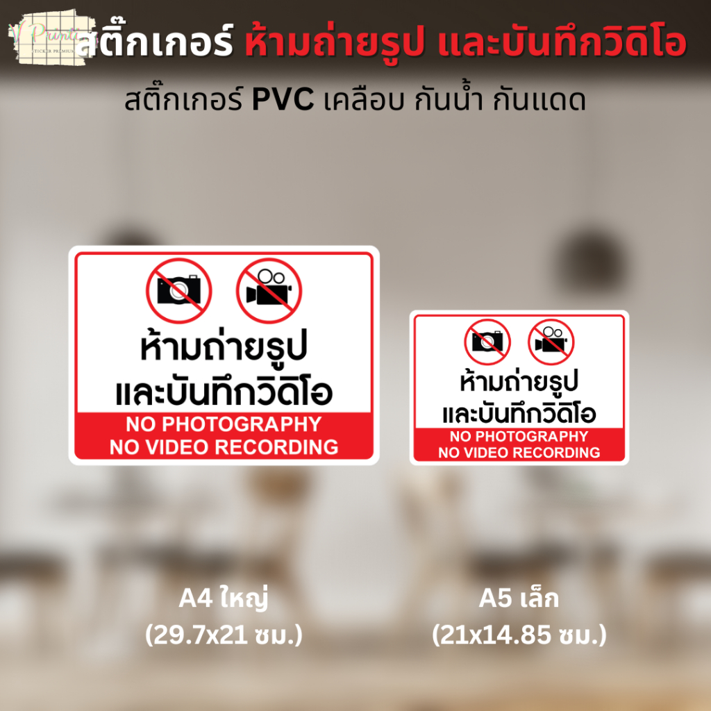 สติ๊กเกอร์ ห้ามถ่ายรูป และบันทึกวิดิโอ NO PHOTOGRAPHY NO VIDEO RECORDING