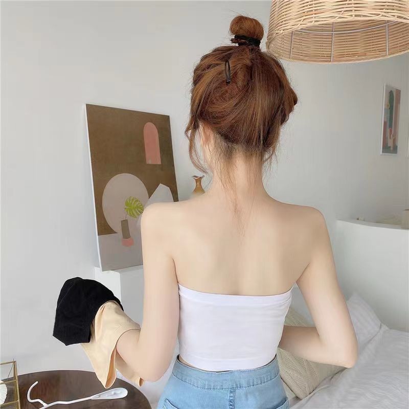 เสื้อเกาะอก สีพื้น ผ้านุ่ม crop เข้ากับทุกการแต่งกาย#MX-2