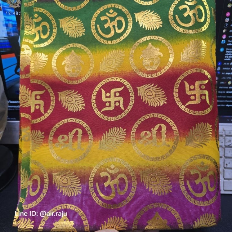 A&R Tewa Bucha ผ้าลายโอม+สวัสดิกะ+ขนนกยูง_ผ้าหลายสีในผืนเดียว