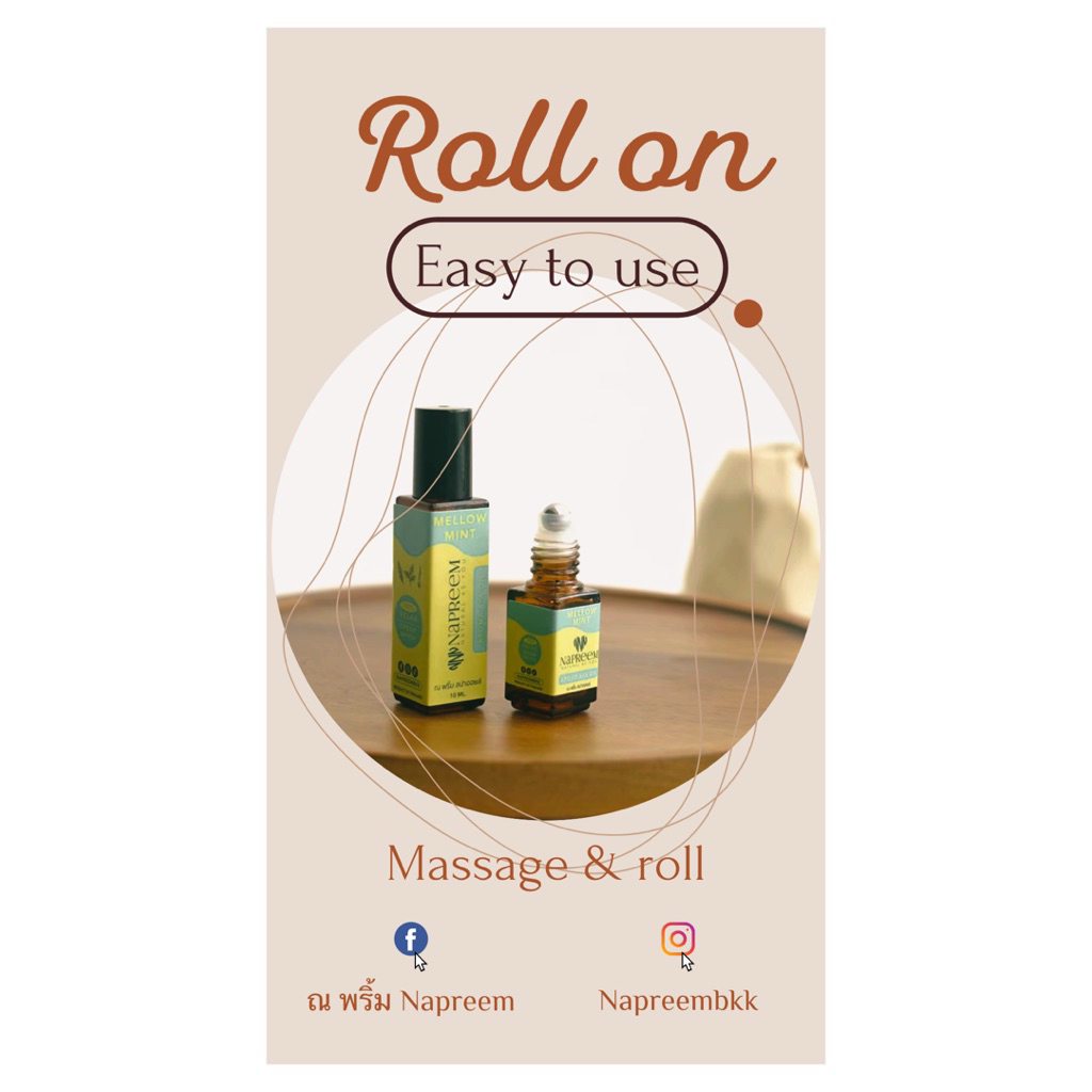 #น้ำมันนวดไม้กฤษณาหัวลูกกลิ้ง Napreem Agarwood oil “Mellow mint”