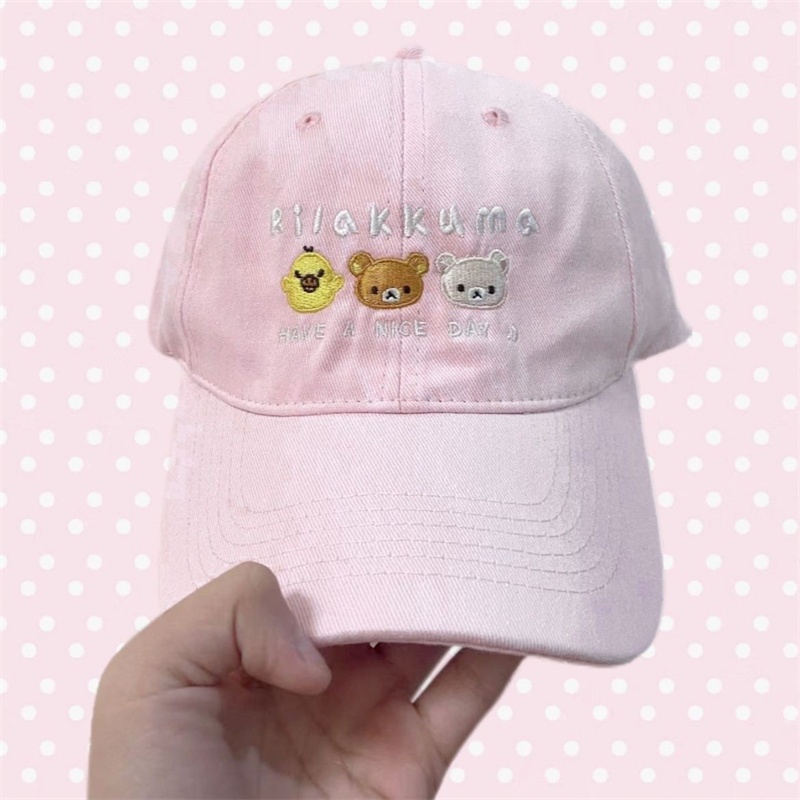 Rilakkumabear Gorra หมวกฤดูร้อนการ์ตูนแฟชั่นหมวกเบสบอลน่ารักหมวกบังแดดสีเหลืองชมพู