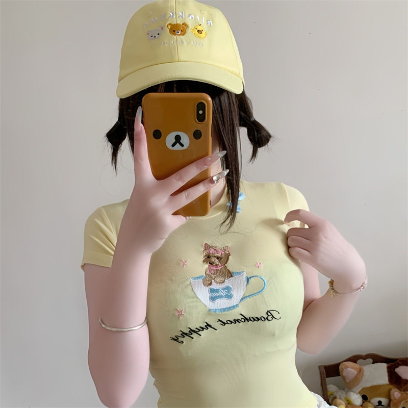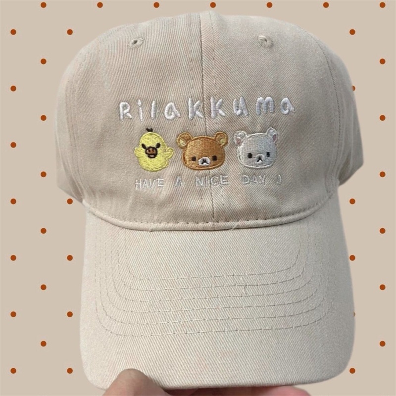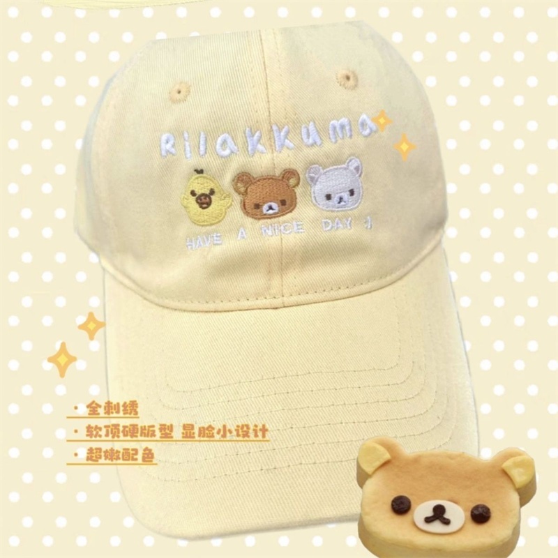 หยิบใส่ตะกร้าRilakkumabear Gorra หมวกฤดูร้อนการ์ตูนแฟชั่นน่ารักเบสบอลหมวกสีเหลืองสีชมพูเย็บปักถักร้อย Sun Visors