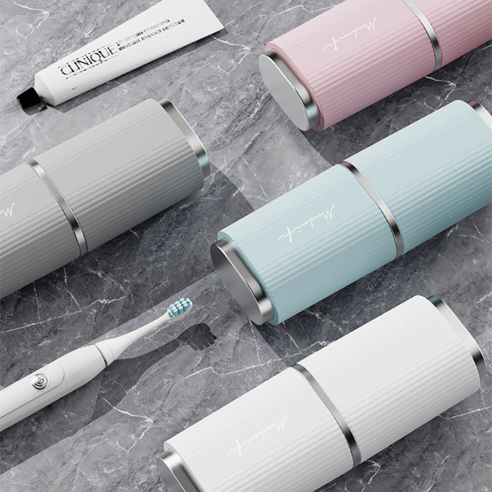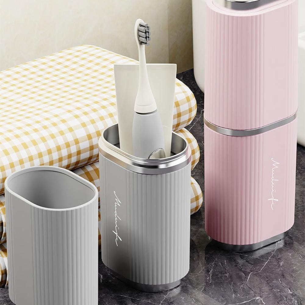 การออกแบบถ้วยคู่พร้อมกล่องเก็บแปรงสีฟันทำให้ง่ายต่อการพกพาและใช้งานขณะเดินทางหรือที่บ้าน