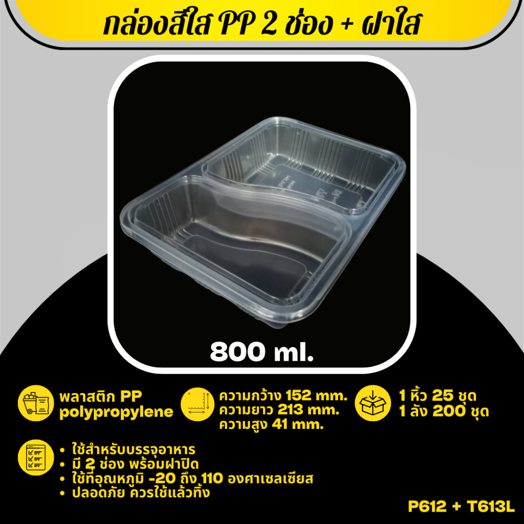กล่องใส่อาหาร 2 ช่อง 800 ml. (แยกช่อง) + พร้อมฝาสีใส