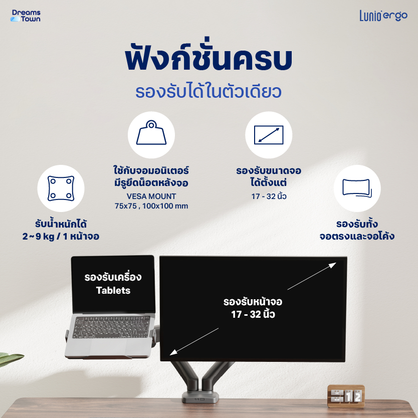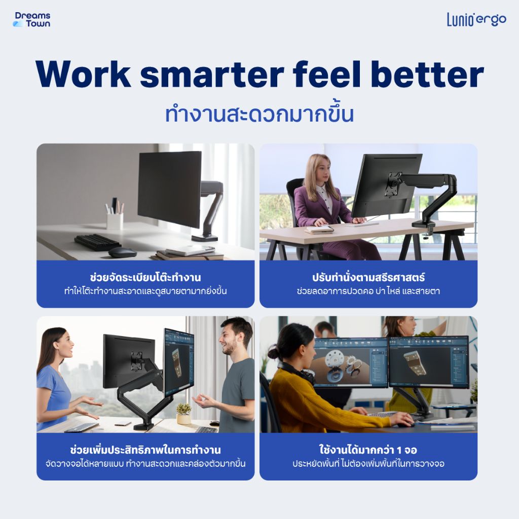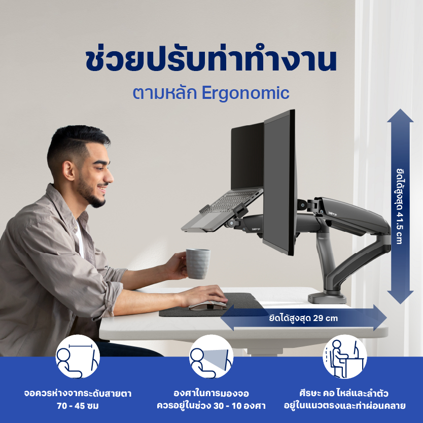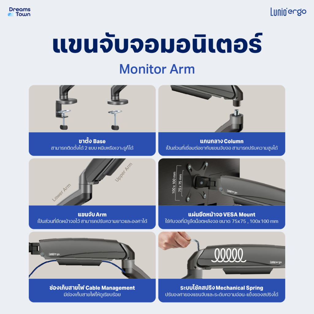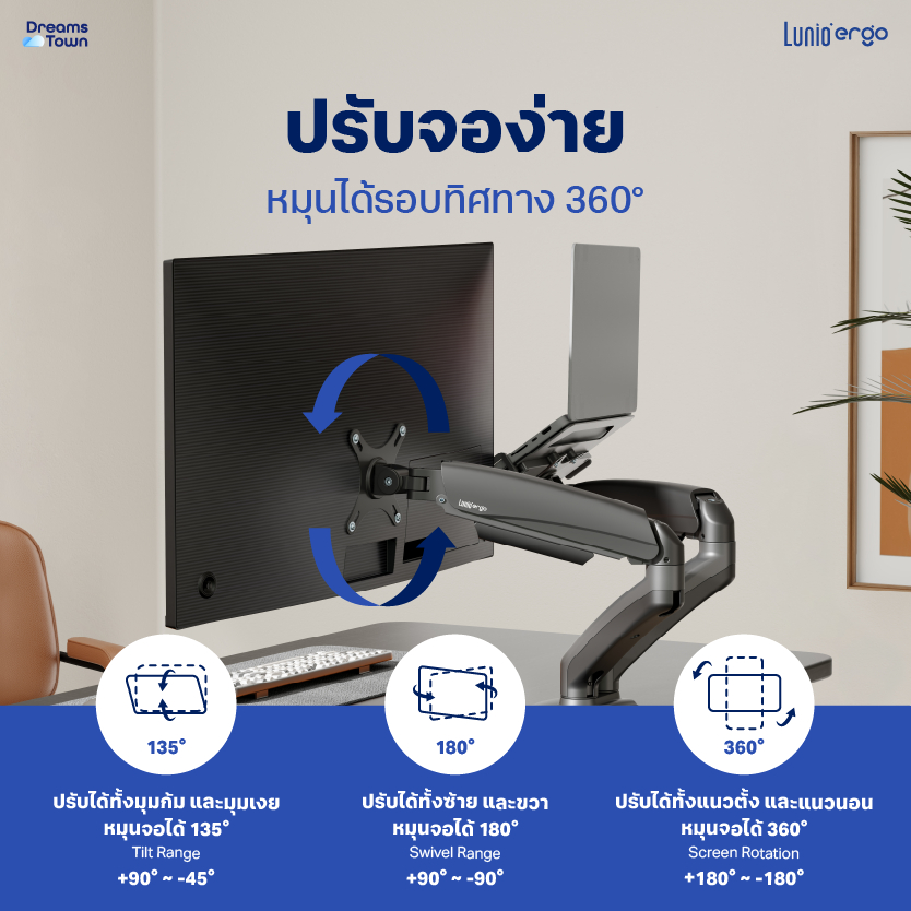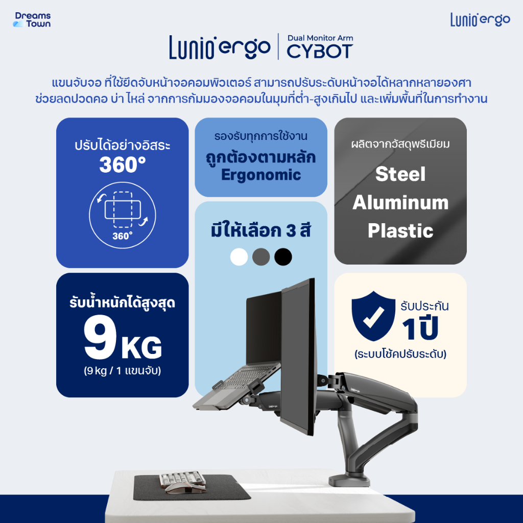 ✨Lunio Ergo Monitor Arm Cybot แขนจับจอ ขาตั้งจอคอม ปรับองศาจอการทำงานได้360องศา ลดความเสี่ยงจากการปวดคอ บ่า ไหล่ พร้อมทั้งช่วยปรับท่านั่งให้ถูกสรีรศาตร์