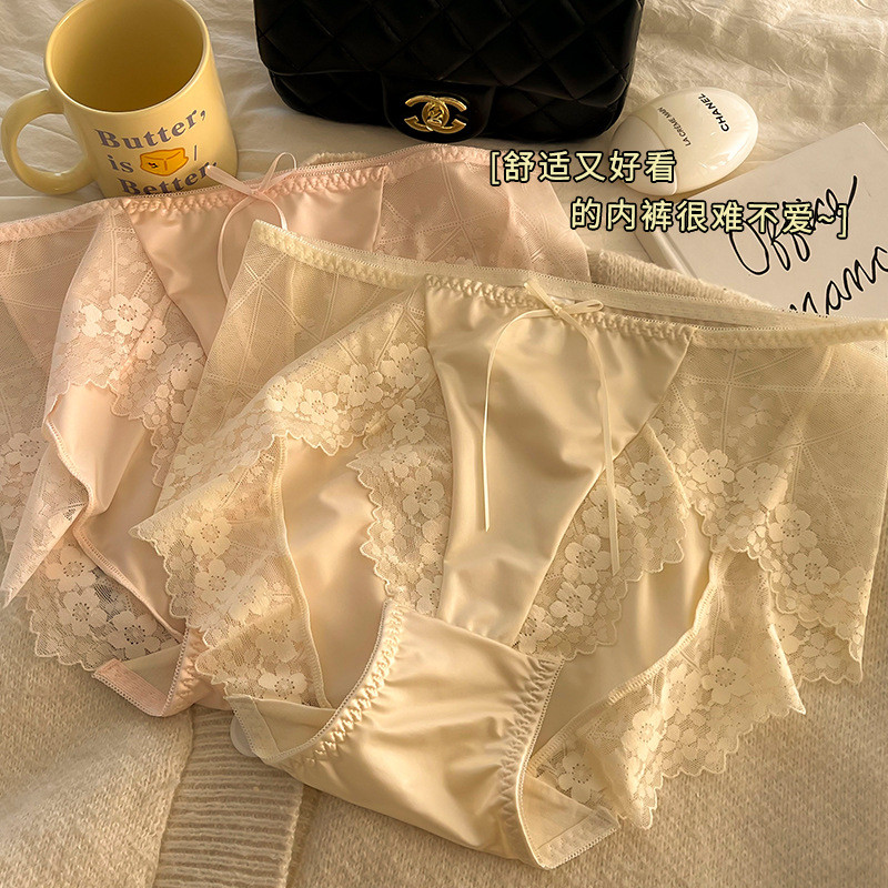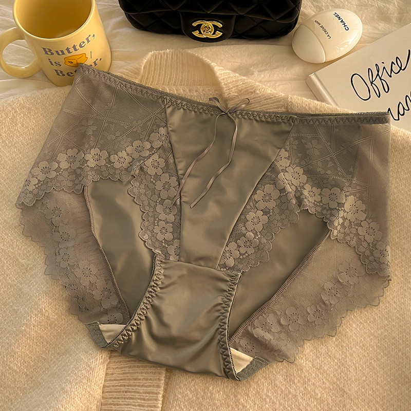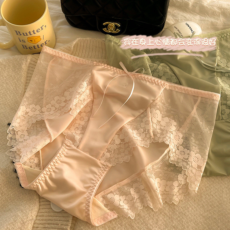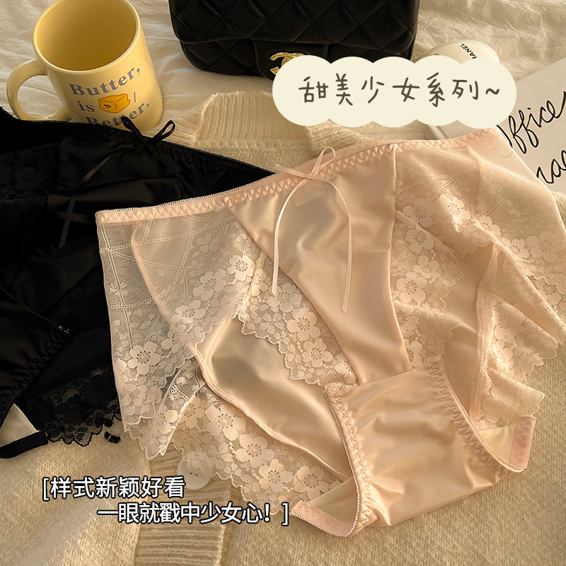 กางเกงในสตรีเอวสูงไซส์ใหญ่สำหรับสาวอวบ200กก. INS กางเกงในทรงสามเหลี่ยมขอบลูกไม้เซ็กซี่ระบายอากาศได้ดีสำหรับสะโพก