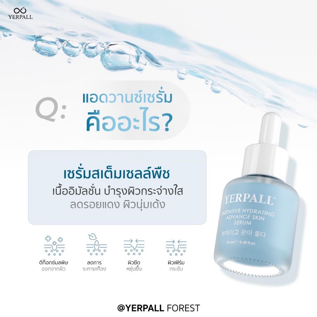 yerpall แอดวานซ์สกินเซรั่ม Hydrating Advance Skin Serum สเต็มเซลล์พืช ปริมาณ 15 ml.