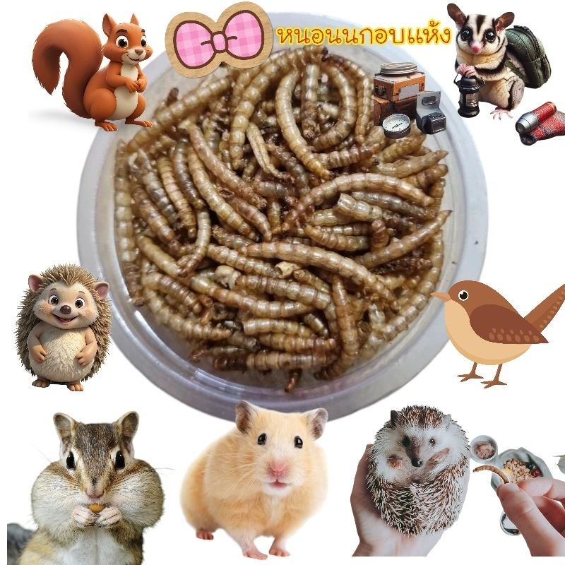 หนอนนกอบเเห้งไร้น้ำมัน สด ใหม่ โปรตีนสูง ขนาด 3 ออนซ์ สำหรับสัตว์เลี้ยง ที่น่ารักของท่าน สัตว์เล็ก สัตว์ฟันเเทะ