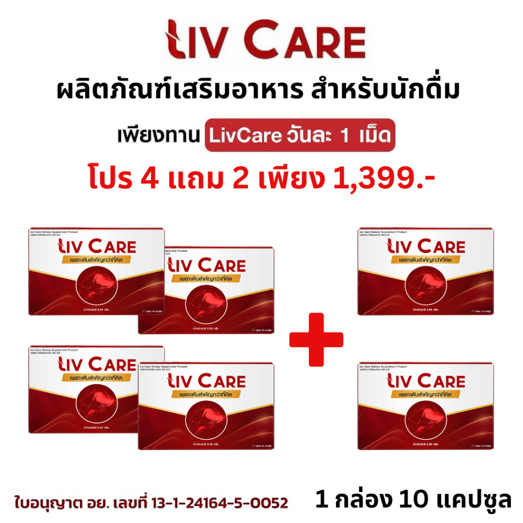โปร 4แถม2 Liv Care ลีฟแคร์ อาหารเสริม ดูแลตับ ค่าตับสูง ลีฟแคร์พลัส 1 กล่อง 10 เม็ด
