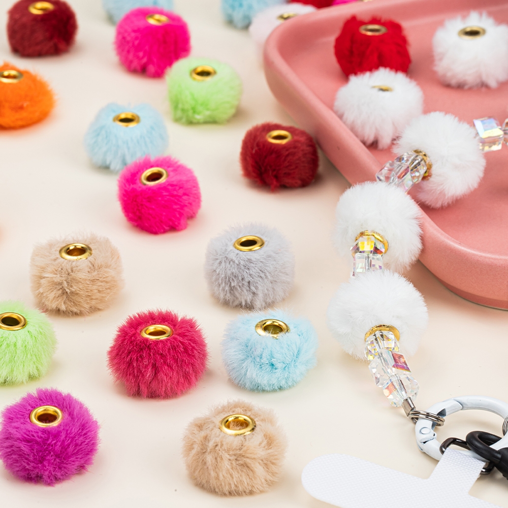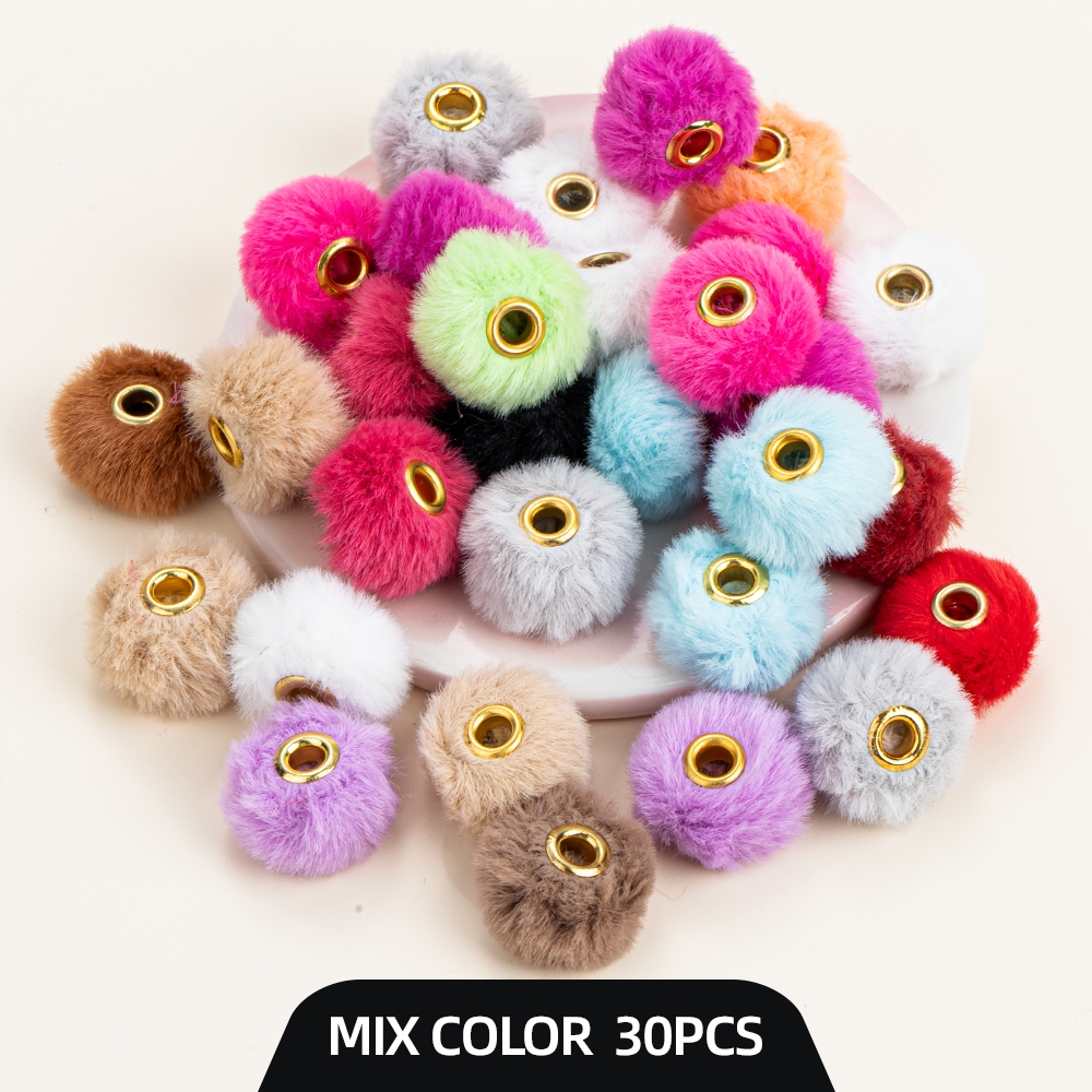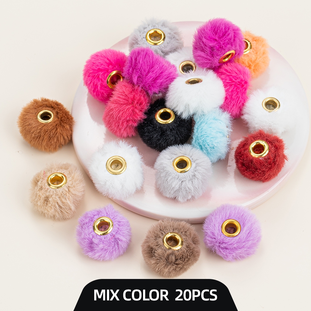 10ชิ้นผสมแพ็ค20มิลลิเมตรซุปเปอร์นุ่มเลียนแบบกระต่ายขนลูกผมลูกปัดหลุมตรงแยกลูกปัด