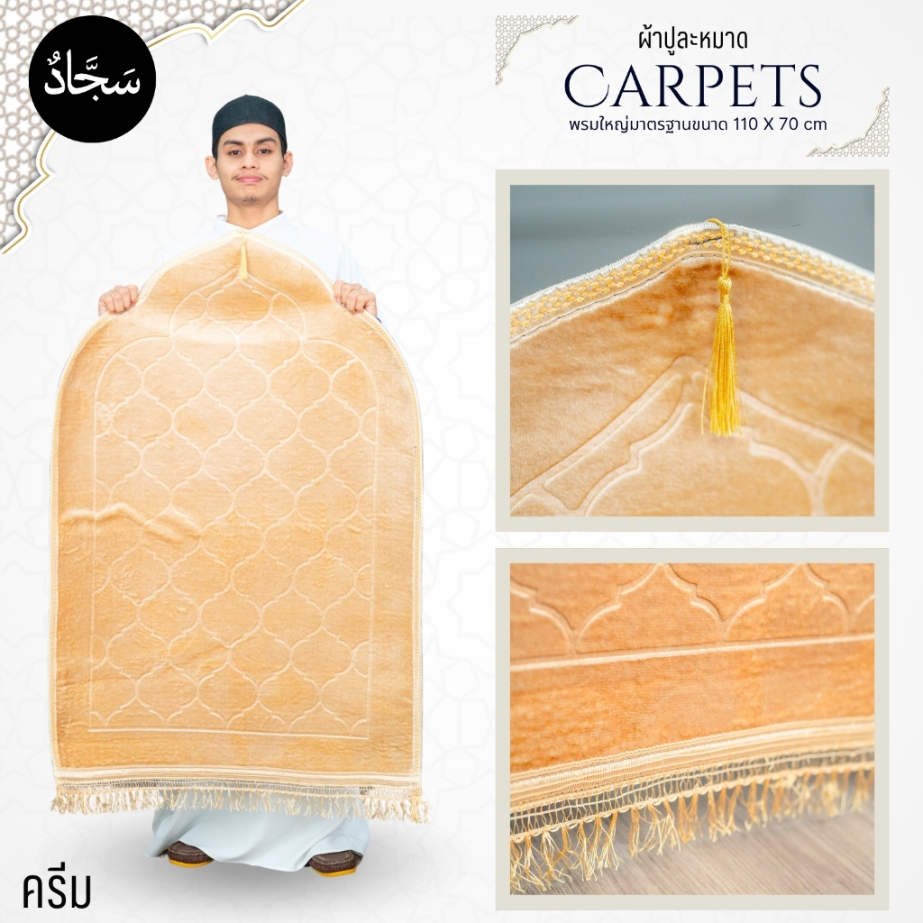 ผ้าปูละหมาดหนานุ่มขนาดใหญ่ (110*70 ซ.ม.) แต่งพู่สวยงามเย็บขอบอย่างดี มียางกันลื่น PU75วาริสมุสลิม