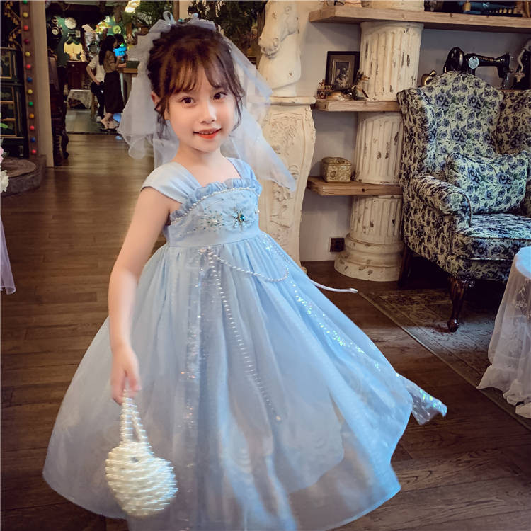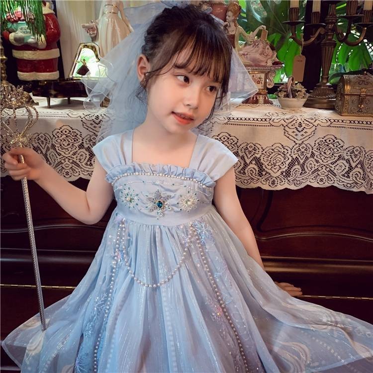 สาวชุดเจ้าหญิงเอลซา2025 ชุดสไตล์จีนแบบใหม่สลิงชุดเจ้าหญิงวันเกิดแฟชั่นซูเปอร์นางฟ้าสาว