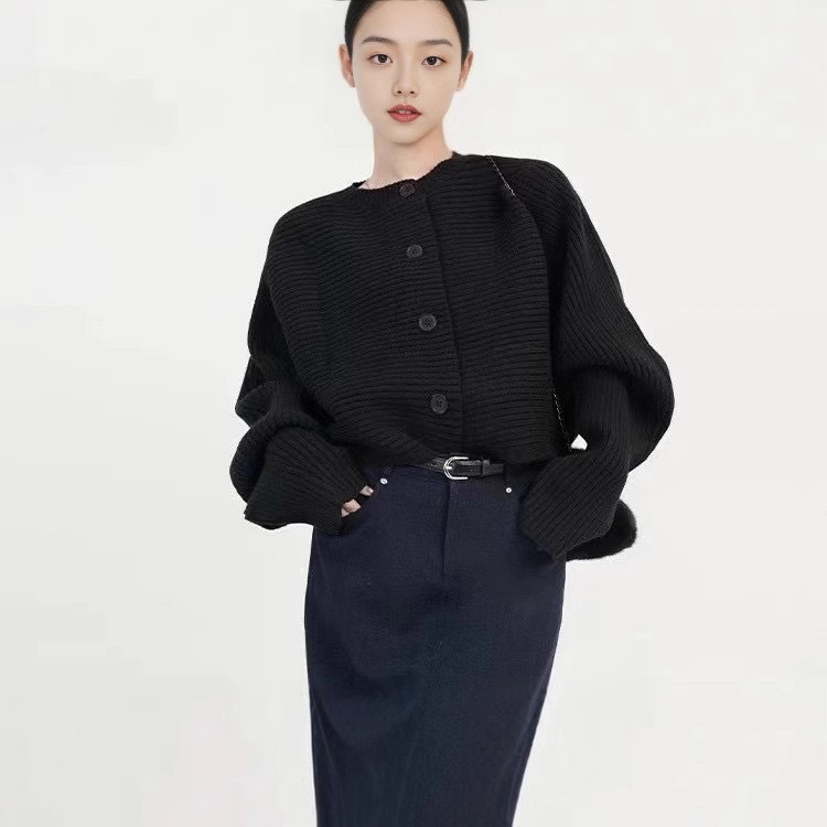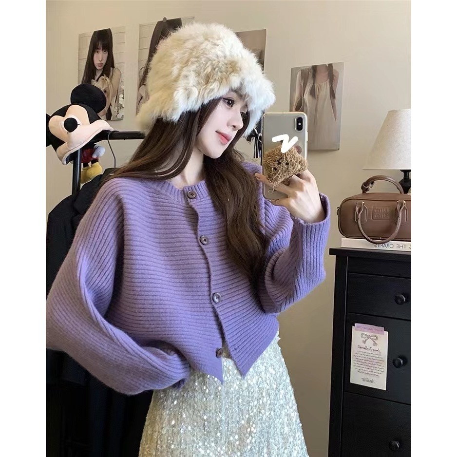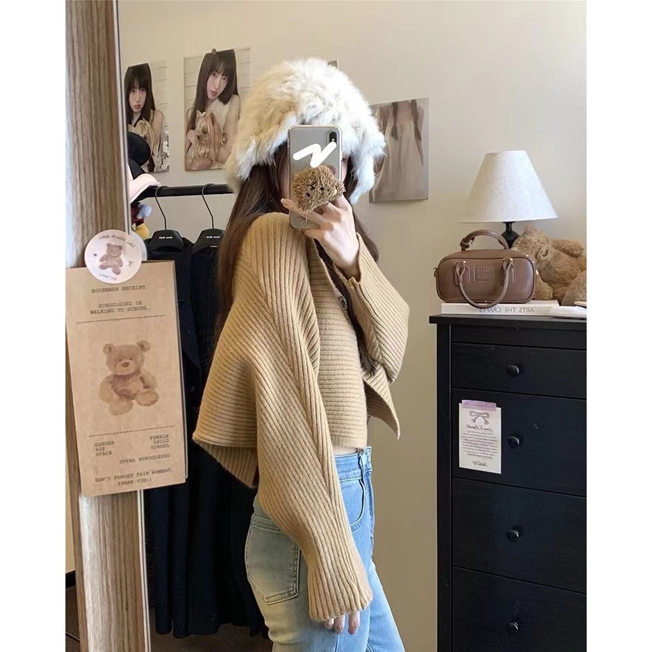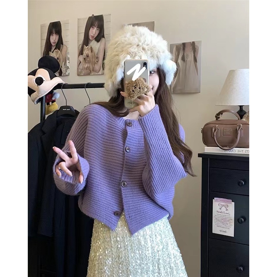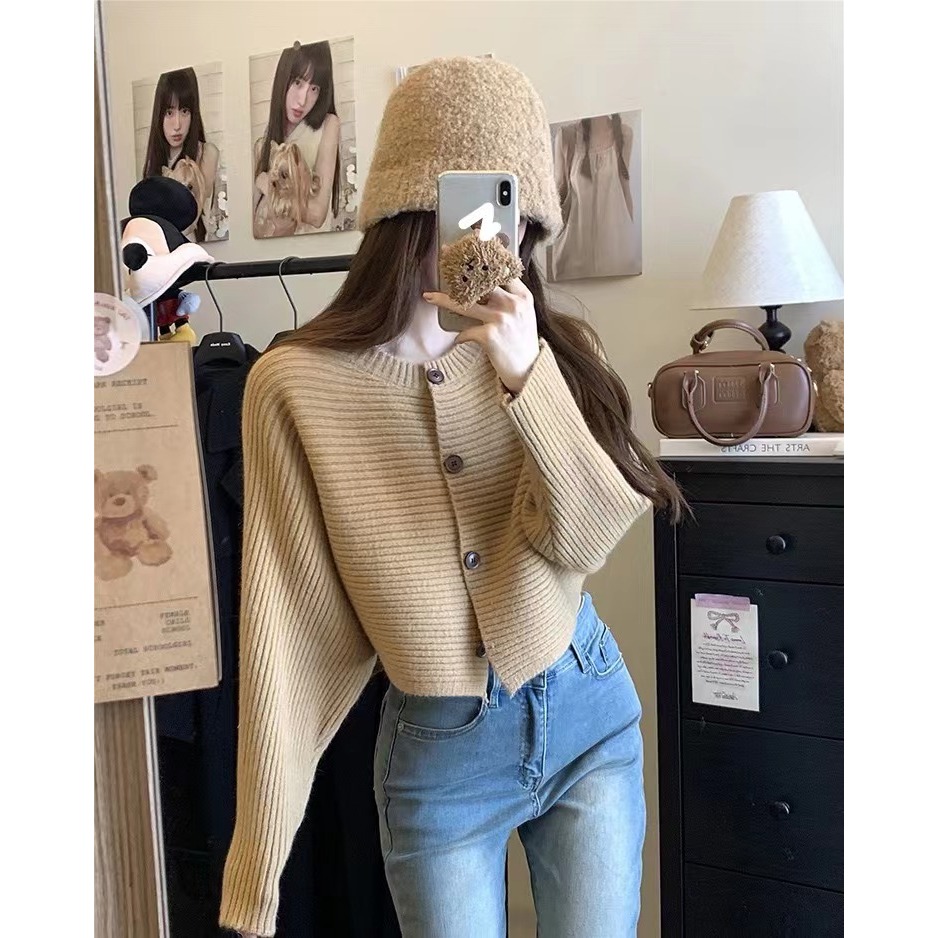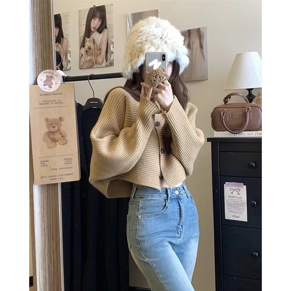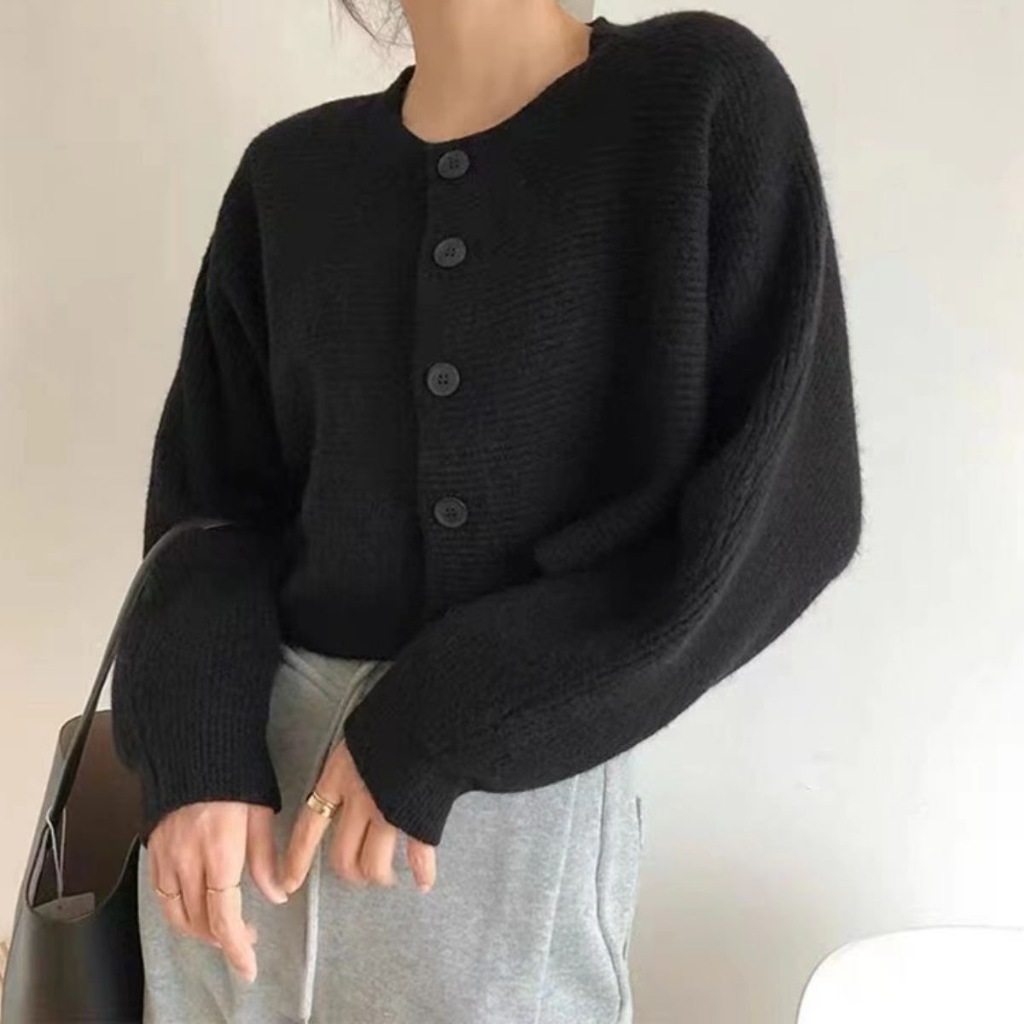 เสื้อคลุมคาร์ดิแกน เสื้อไหมพรมแขนยาว แบบสั้น แขนค้างคาว รุ่นใหม่ ผ้านิ่ม สไตส์เกาหลี