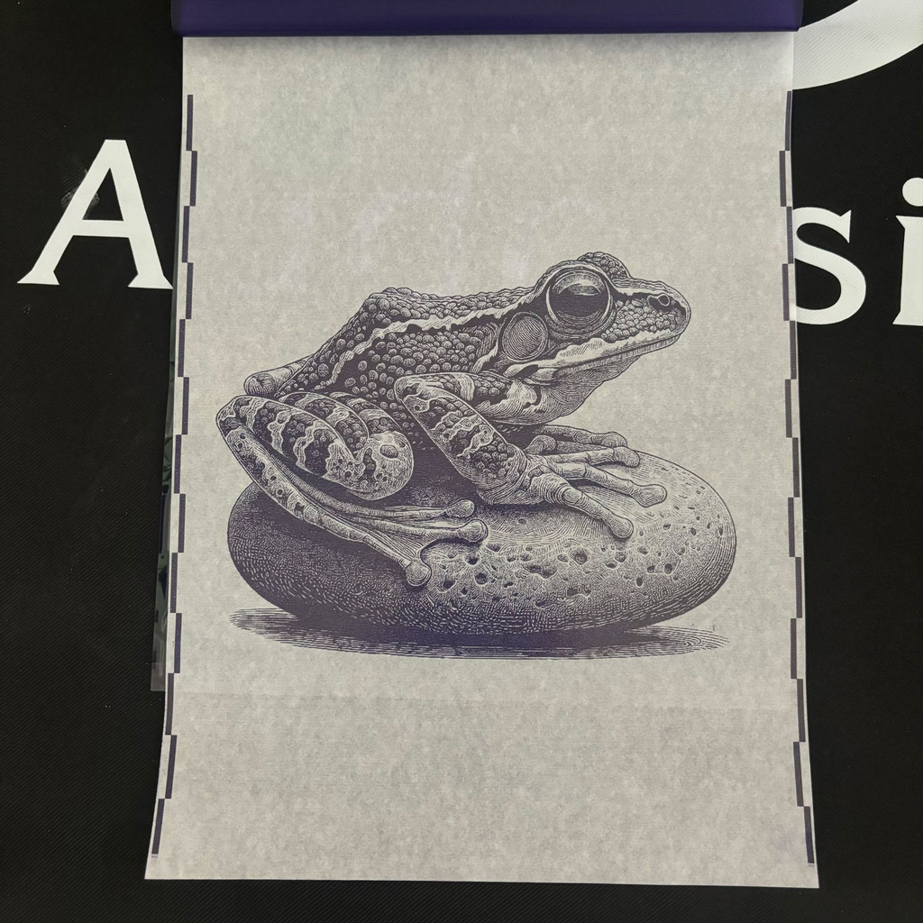 2. ใช้ปากกาลูกลื่นเพื่อวาดโครงร่างของการออกแบบที่คุณต้องการสำหรับรอยสักบนชั้นที่ 1 หรือเรียกใช้ภาพวาดเส้นผ่านอุปกรณ์ถ่ายเทความร้อนหรือแฟกซ์ความร้อน