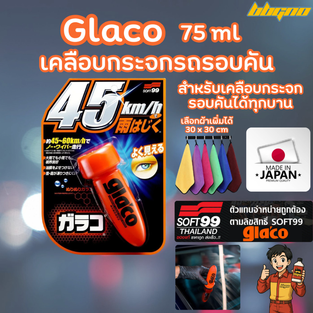 [พร้อมส่ง] Glaco น้ำยาเคลือบกระจก SOFT99 Gla’co ขนาด 120 Ml. แถมผ้าไมโครไฟเบอร์ ของแท้ กลาโค่