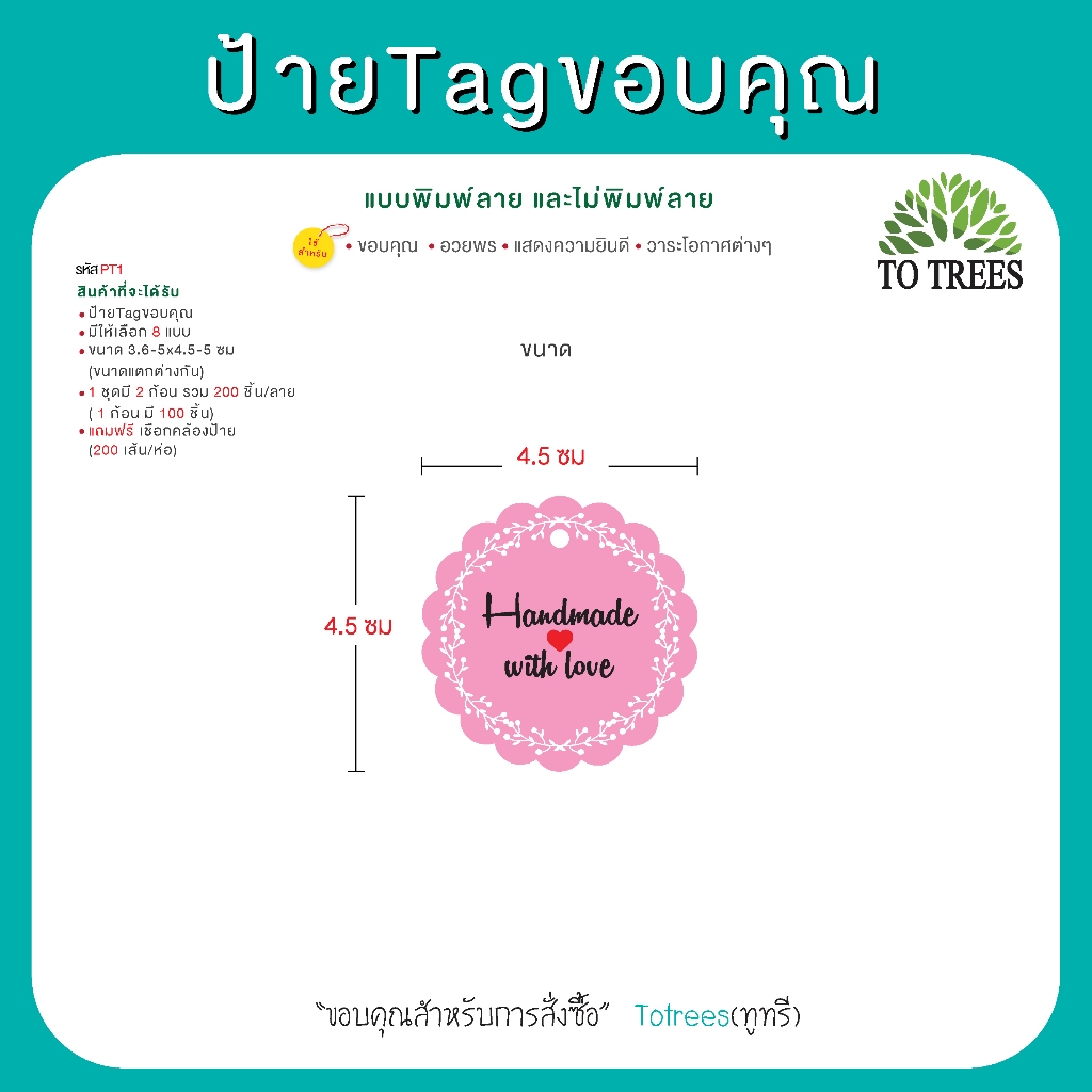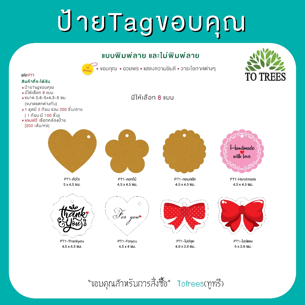 Totrees ป้ายTagขอบคุณ มีกระดาษให้เลือก2 ชนิด 200 ชิ้น แถมฟรี เชือกคล้องป้าย 200 เส้น รหัส PT1