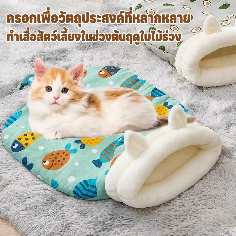 ด้วยการออกแบบการ์ตูนและรูปทรงหางแมวถุงนอนสัตว์เลี้ยงจึงน่ารักและสวยงาม ด้านในนุ่มและสัมผัสสบายซึ่งทำให้สัตว์เลี้ยงนอนหลับสนิทและสัตว์เลี้ยงจะรู้สึกสบายในการนอนหลับ