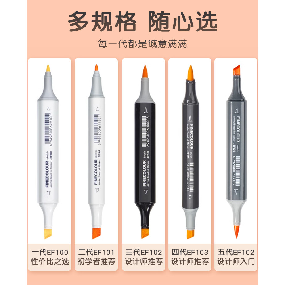 Ef102 ปากกามาร์กเกอร์สีผิวสองหัวแอลกอฮอล์มันวาดปากกาคู่อุปกรณ์ศิลปะโรงเรียนFINECOLOUR