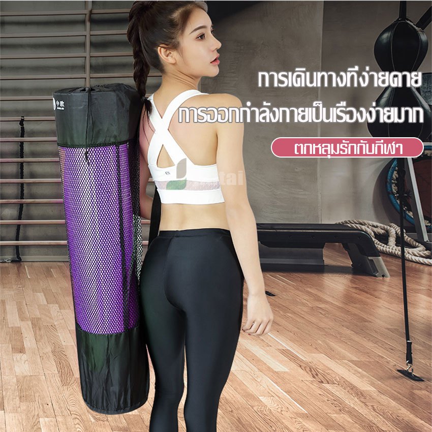 กระเป๋าตาข่ายอเนกประสงค์แบบพกพา มีสายสะพายและที่รูด เก็บเสื่อโยคะได้ทุกรูปแบบ น้ำหนักเบา ผลิตจากผ้าOxford ระบายอากาศได้