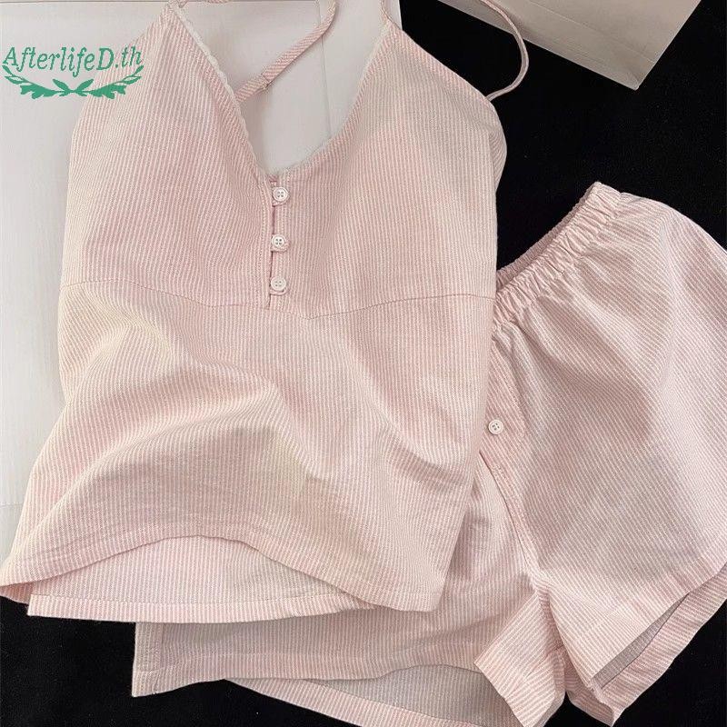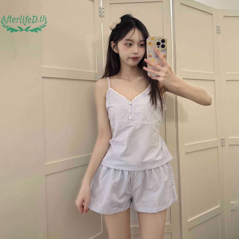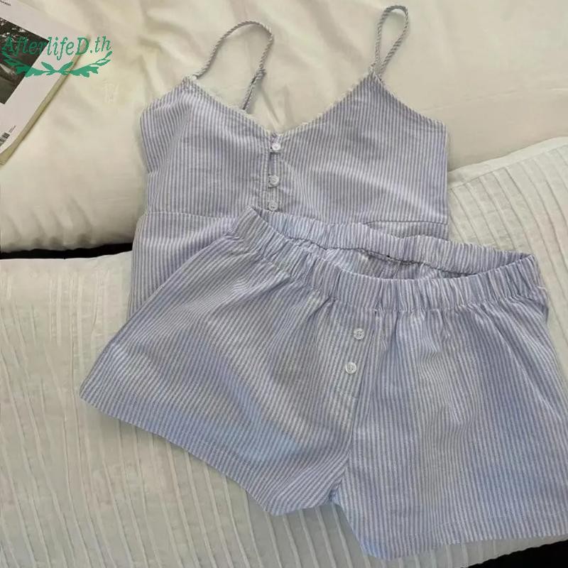 กางเกงขาสั้นและแผ่นรองหน้าอก ชุดนอนสำหรับผู้หญิง ลายหวานๆ สำหรับฤดูร้อน