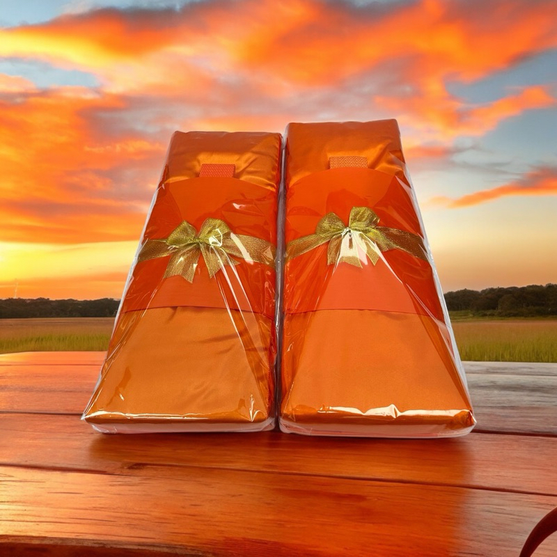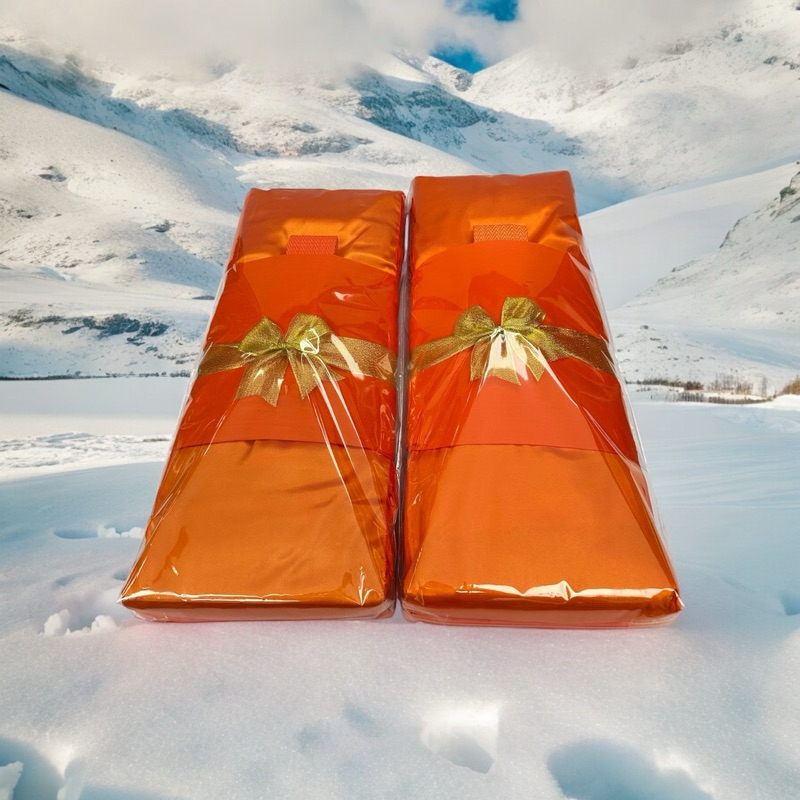 ชุดไตรเต็มจีวรคู่ ไตรครบชุด7ชิ้น ใช้ในพิธีต่างมีโบว์สีทอง