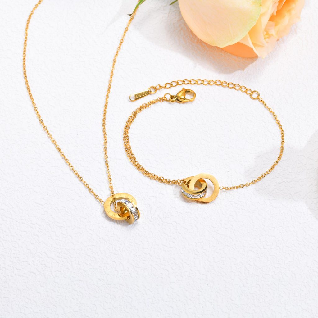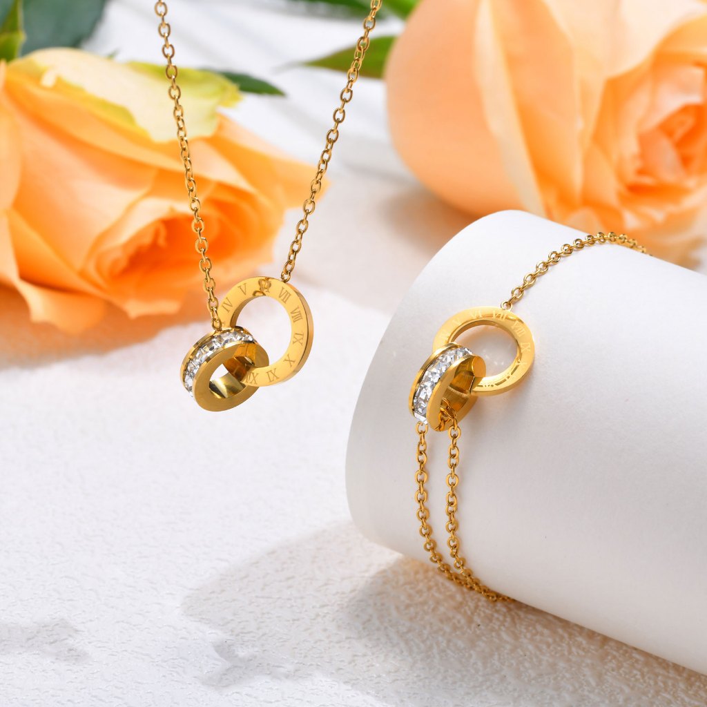 Vnox ชุดเครื่องประดับที่มีสร้อยคอและแข็งข้อแบบโรมันเลขแบบลักซารี่สำหรับผู้หญิงของ, ชุดเครื่องประดับที่ทำจากสแตนเลสท