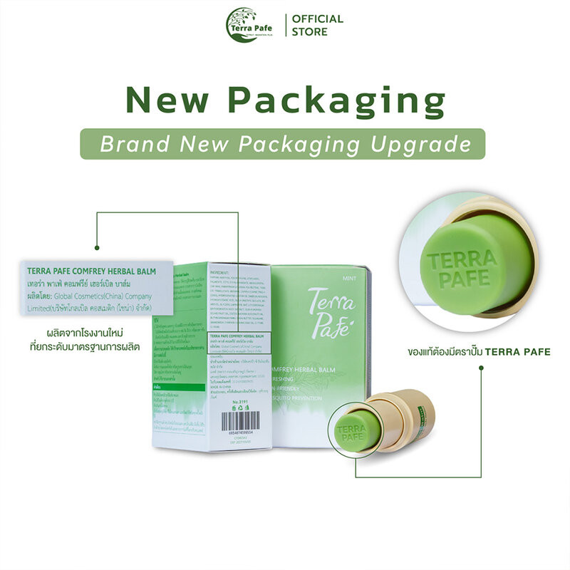 TERRA PAFE Comfrey Balm 7gบาล์มสมุนไพรอโรม่าหอมสดชื่น ทันสมัยใช้งานง่าย พกพาสะดวกเนื้อบาล์มสีเขียว ซึมซาบง่าย ไม่เหนียวเหนอะหนะอุดมด้วยสารสกัดจากต้นคอมเฟรย์ และสมุนไพรนานาชนิดช่วยลดการอักเสบบวมแดงที่เกิดจากมลภาวะและแสงแด