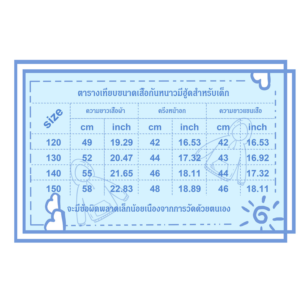 120ซม. ความยาว49ซม., หน้าอก42*2ซม., ความสูงที่แนะนำ110-120ซม.;