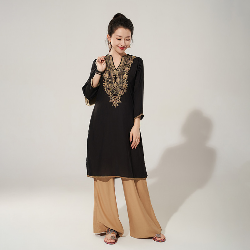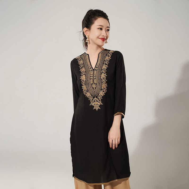เสื้อผ้าอินเดียสไตล์ชาติพันธุ์ สำหรับหญิง ผ้าฝ้ายผ้าไหม เหมาะกับฤดูใบไม้ผลิและฤดูร้อน