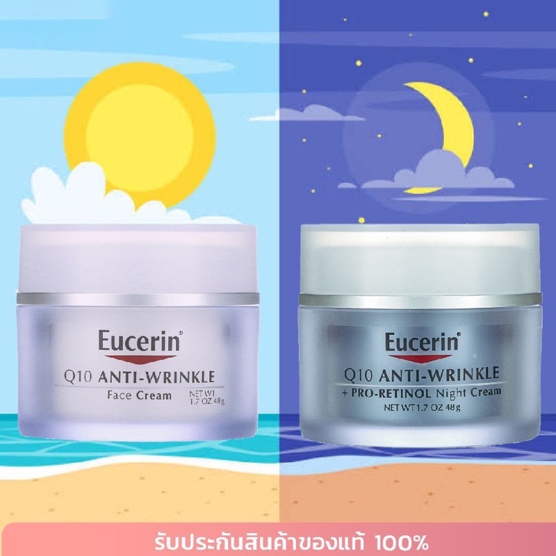 Eucerin Q10 Anti-Wrinkle Face Creme/Pro-Retinol Night Cream/Redness Relief และยกกระชับ 48g