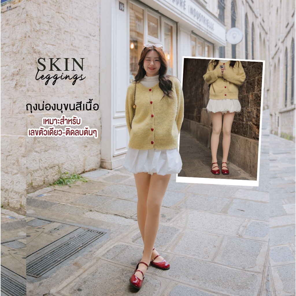 Skin leggings with wool ( minus degrees ) ถุงน่องบุขนสีเนื้อที่ทุกคนตามหา เราทำมาแล้วนะคะ เป็นถุงน่องแบบ2ชั้น ที่สวมใส่ง่าย ที่สำคัญ อุ่นมากค่ะ ข้างในบุขนวูลนุ่มๆ ความหนาที่เลือกมากำลังพอดี ใส่แล้วไม่ดูบวมเลยค่า สามารถกันหนาวได้ติดลบต้นๆถึงเลขหลักเดียว ใส
