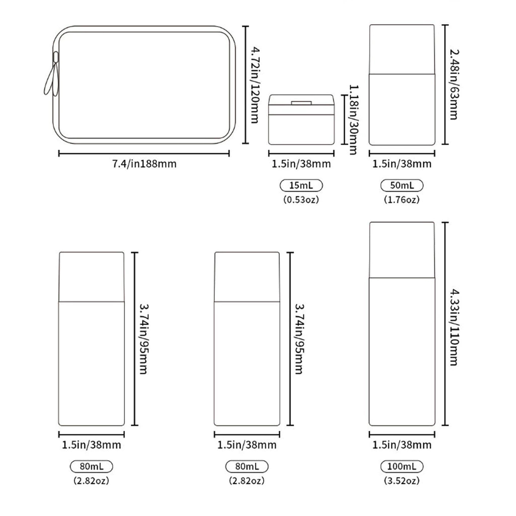 ชุดเดินทางวัสดุ PE 6 ชิ้นเครื่องสำอางขวดย่อย **