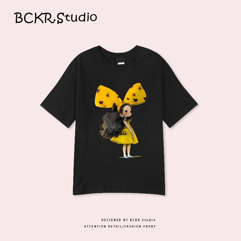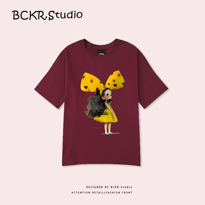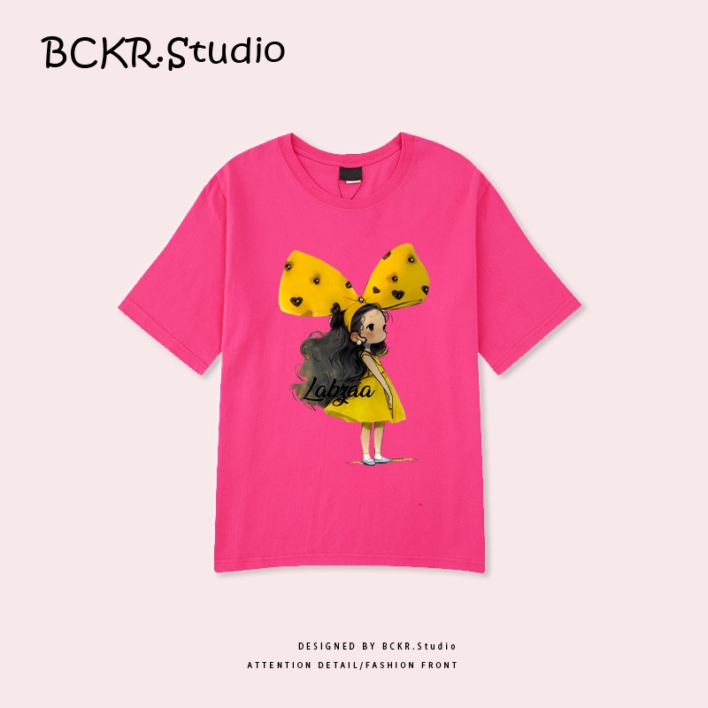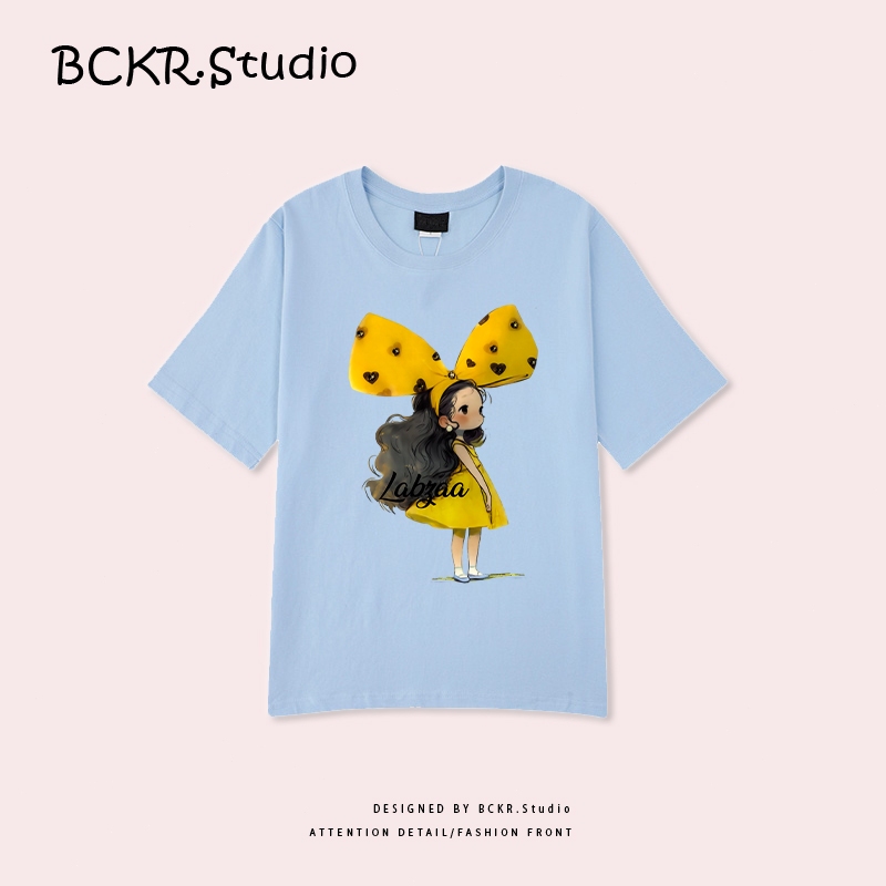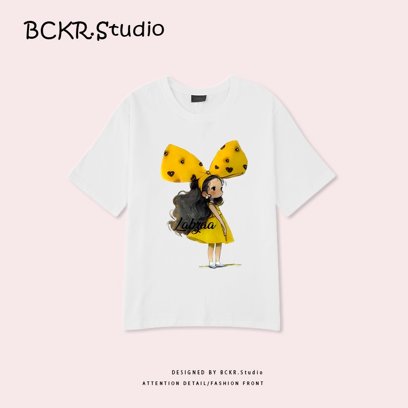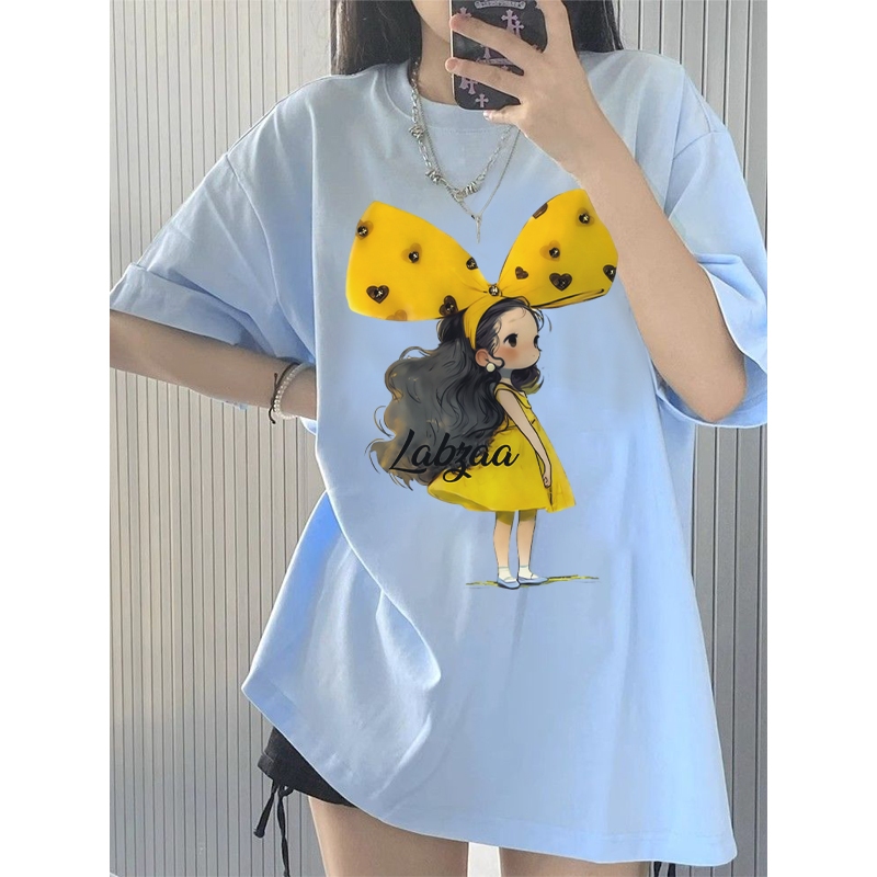 ✨สไตล์เกาหลีสุดแฟชั่น✨ เสื้อยืดผู้หญิงพิมพ์ลายโบว์ 🎀 ฤดูร้อน Oversize ผ้าคอตตอน 100% ระบายอากาศ คอกลม รุ่น YG345