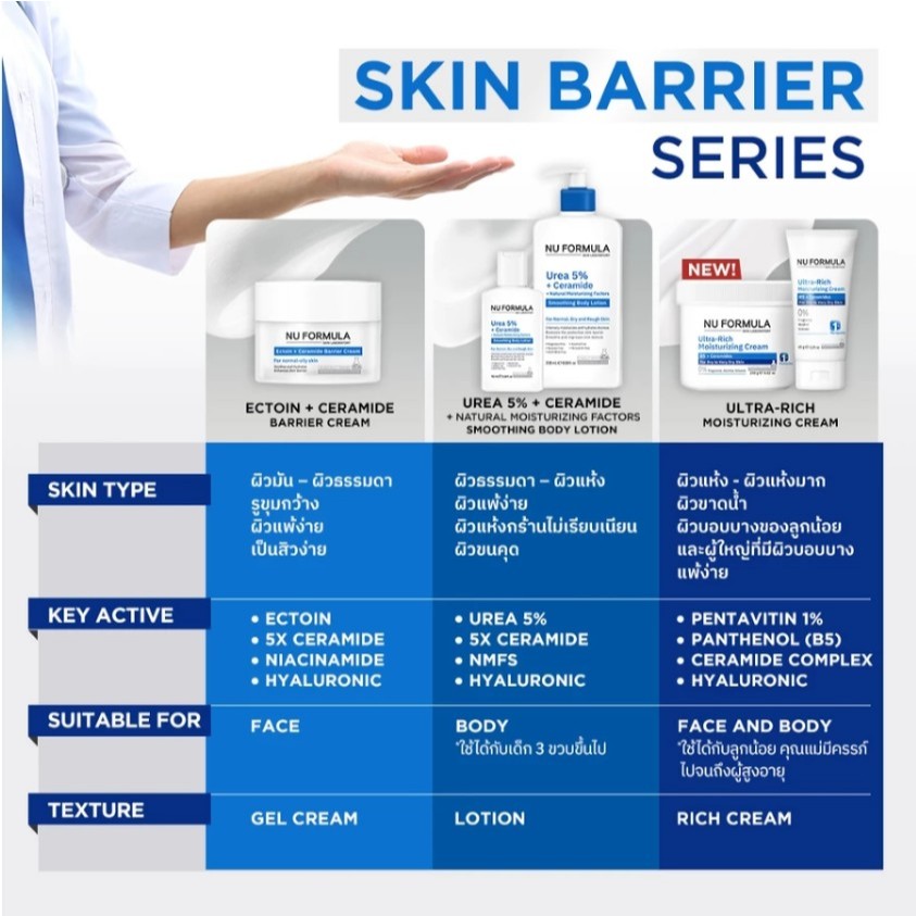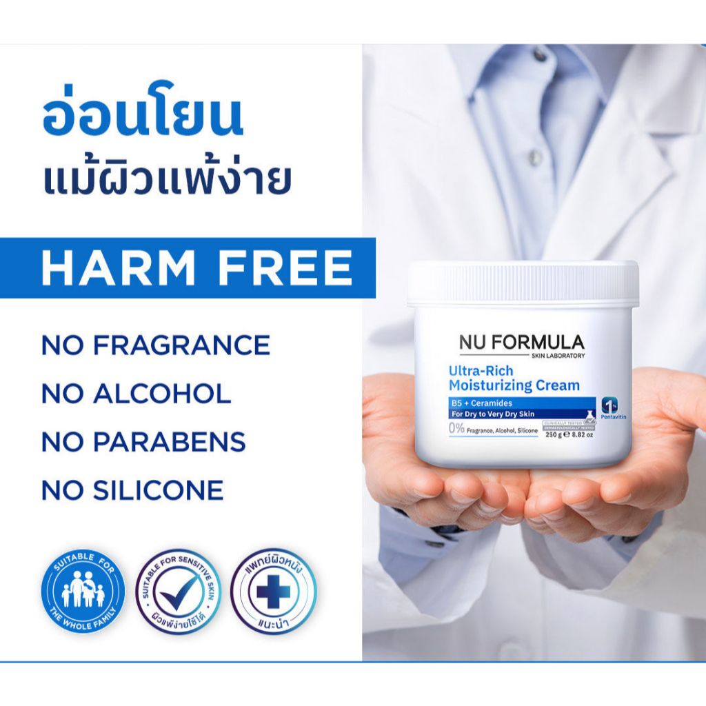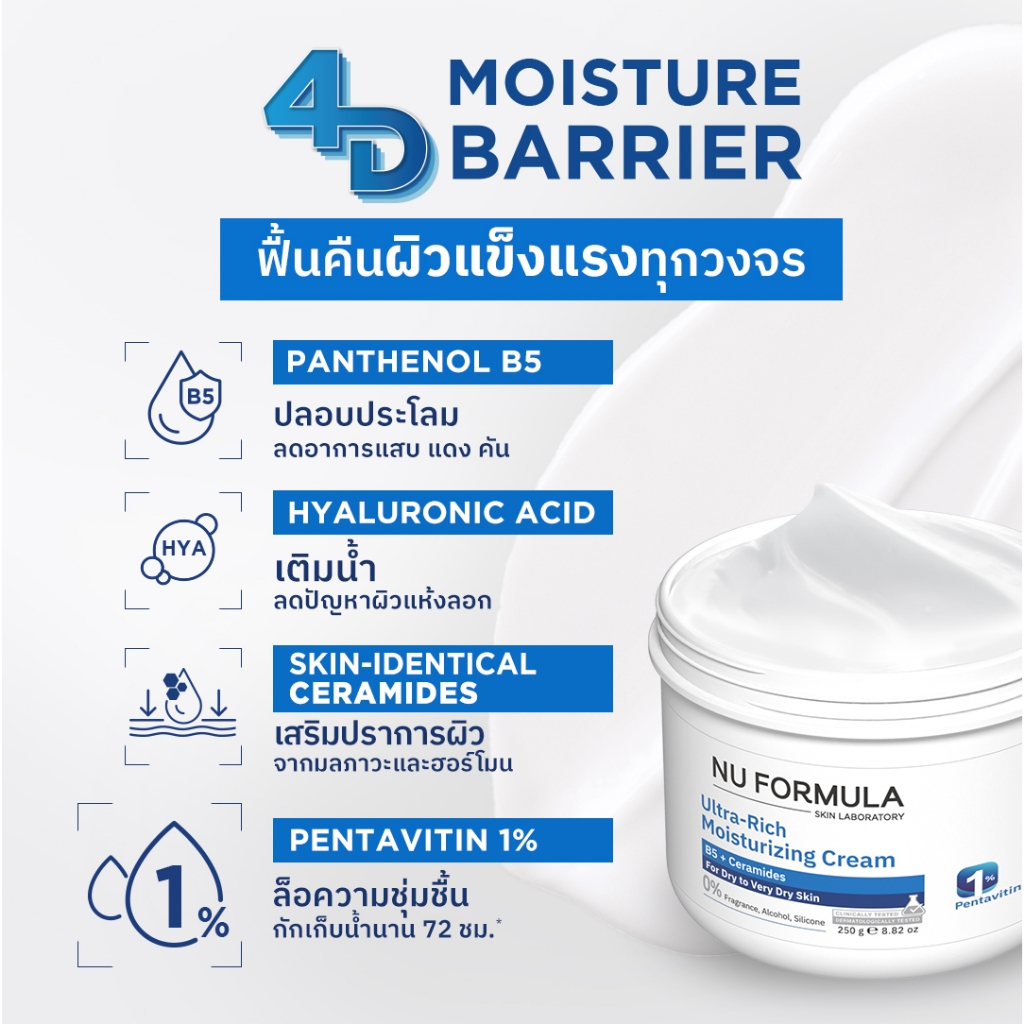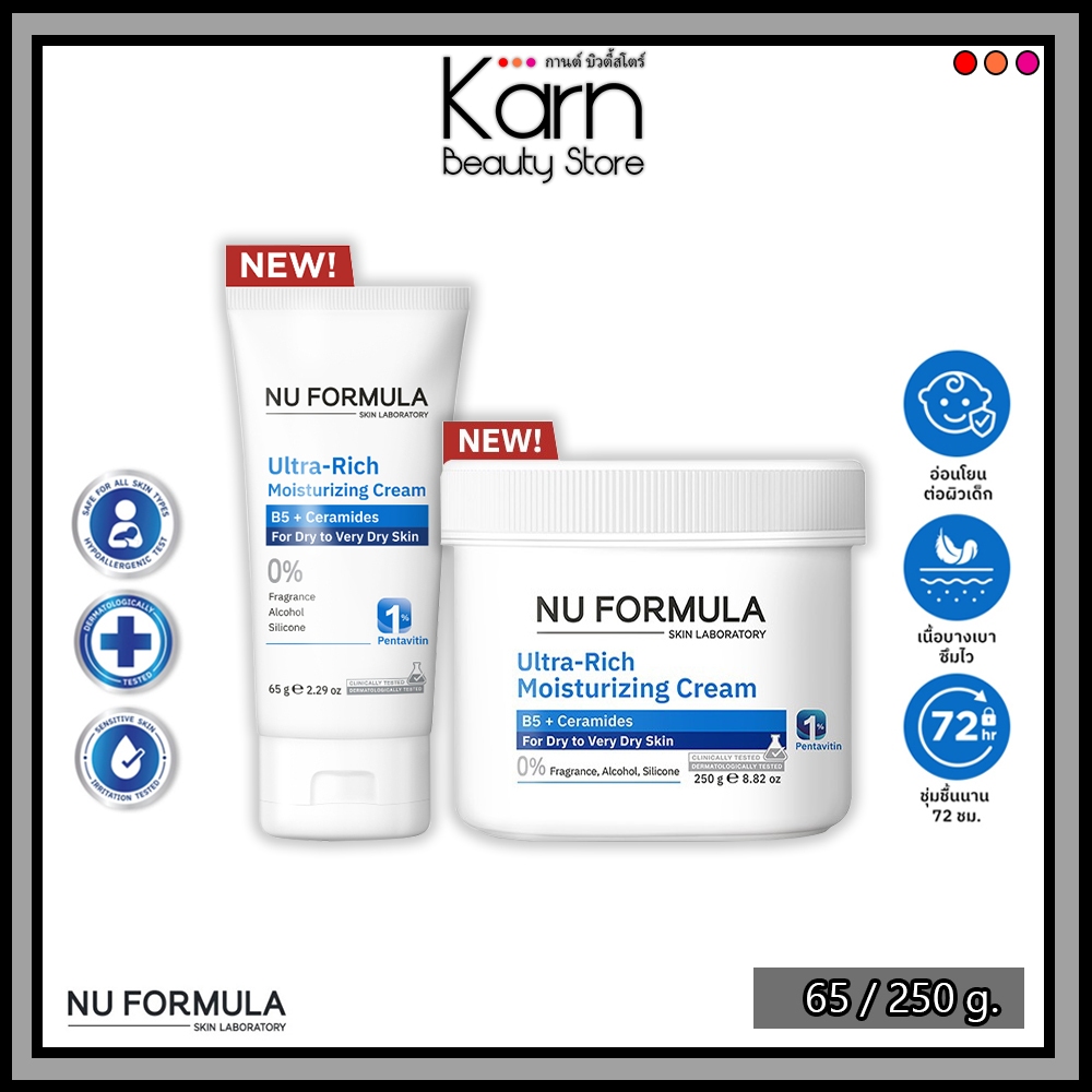 NU FORMULA Ultra-Rich Moisturizing Cream B5 + Ceramide นู ฟอร์มูล่า อัลตร้า-ริช มอนซ์เจอร์ไรซิ่ง ครีม (65 / 250 g.)