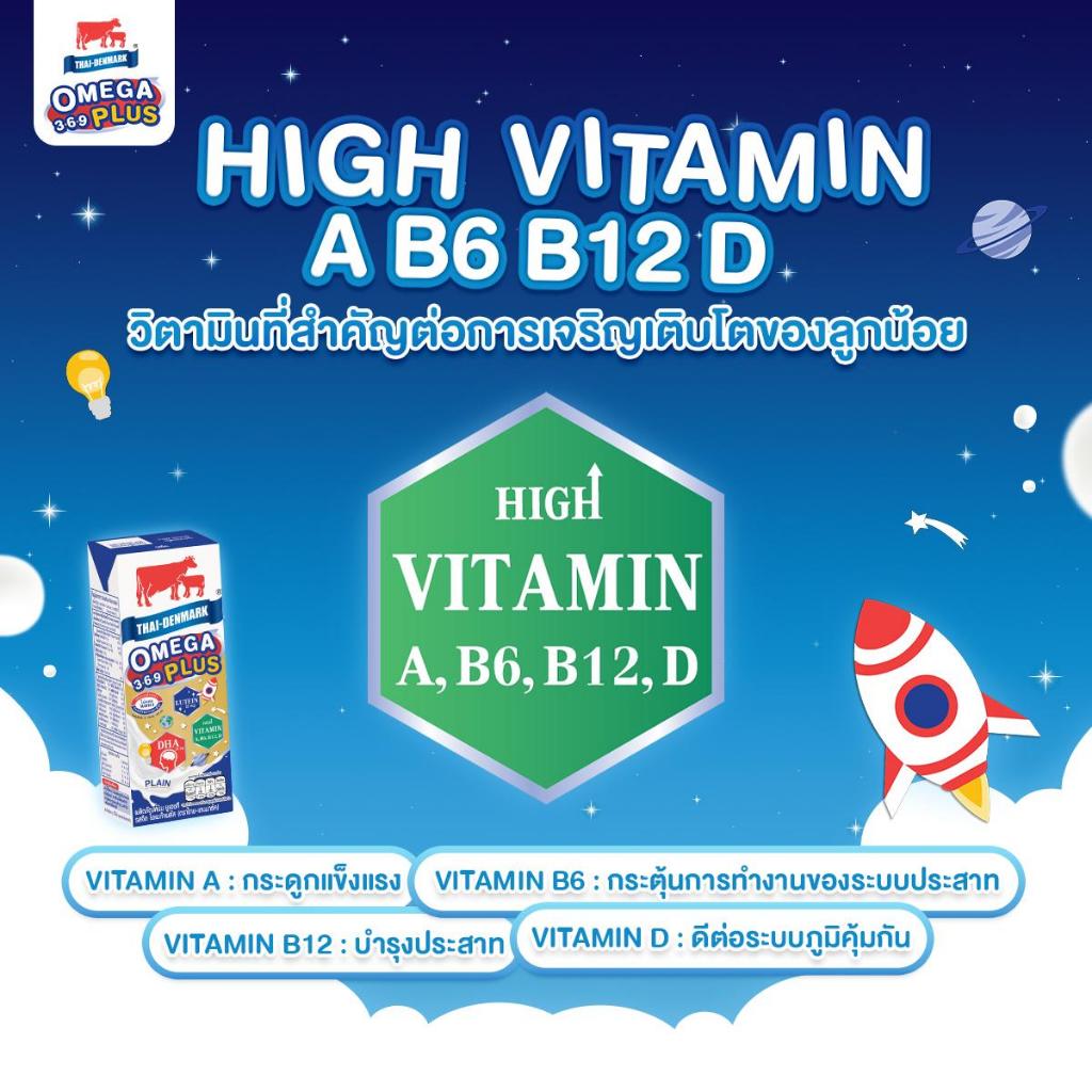 หยิบใส่ตะกร้า(มีโค้ดส่งฟรี X3 ลัง)นมไทยเดนมาร์ค โอเมก้าพลัส นมวัวแดง Omega369 Plus นมยูเอชที รสจืด 180 มล.(ยกลัง 3 ลัง : รวม 108 ก