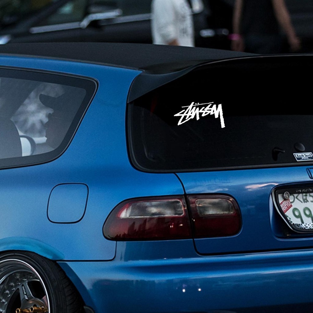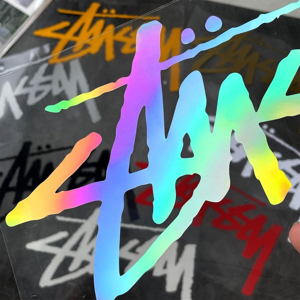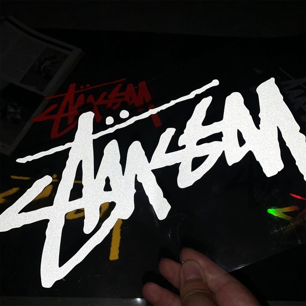 รถจักรยานยนต์ สติ๊กเกอร์สะท้อนแสง Stussy พร้อมตัวอักษรส่วนบุคคลเหมาะสําหรับ Honda Yamaha และสกู๊ตเตอร์อื่นๆ ด้านหน้าของรถยนต์ตกแต่งด้วยสติ๊กเกอร์สําหรับหน้าต่างรถยนต์