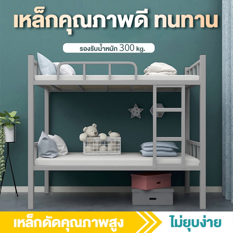MansFieldเตียงเหล็กสองชั้น เตียงสองชั้นหอพัก สีเป็นมิตรกับสิ่งแวดล้อม เหล็กหนา รับน้ำหนักได้ดี มั่นคง และไม่มีเสียงผิดปก