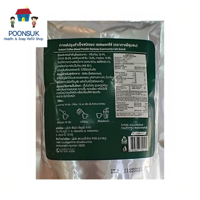 community cafe brand instant coffee mixed powder 3IN1 espresso คาเฟ่ชุมชน กาแฟปรุงสำเร็จชนิดผง 3อิน1 เอสเปรสโซ่ 500 กรัม