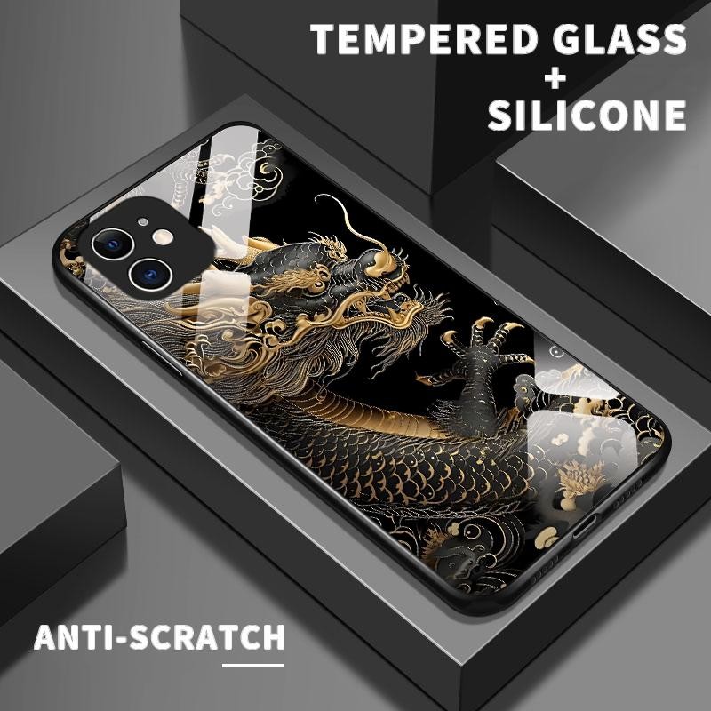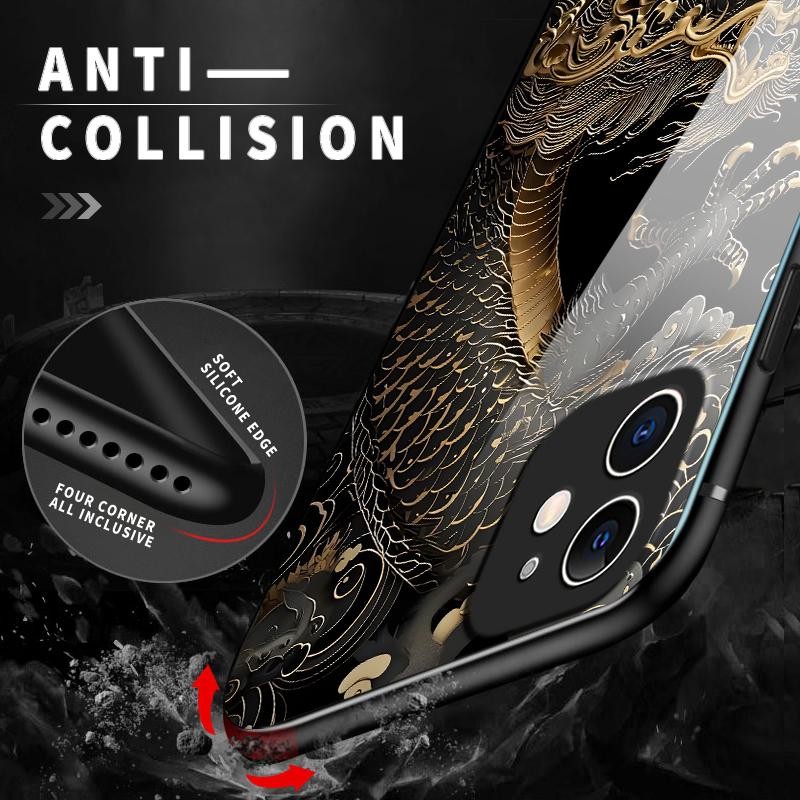 เหมาะสำหรับ Iphone 11 Pro Max 12 Mini Pro Max 13 Mini Max กรณีโทรศัพท์มือถือ Simple Golden Loong Loong เคส