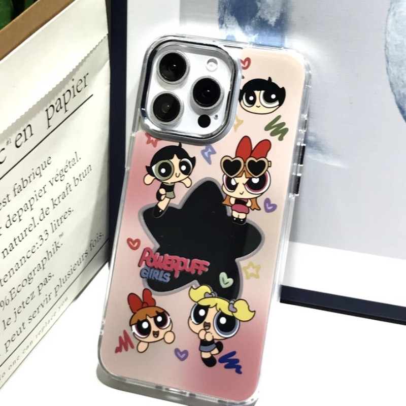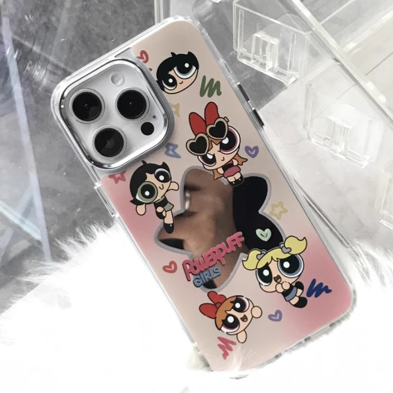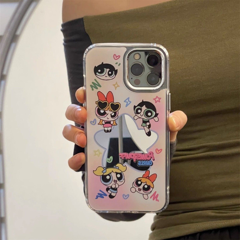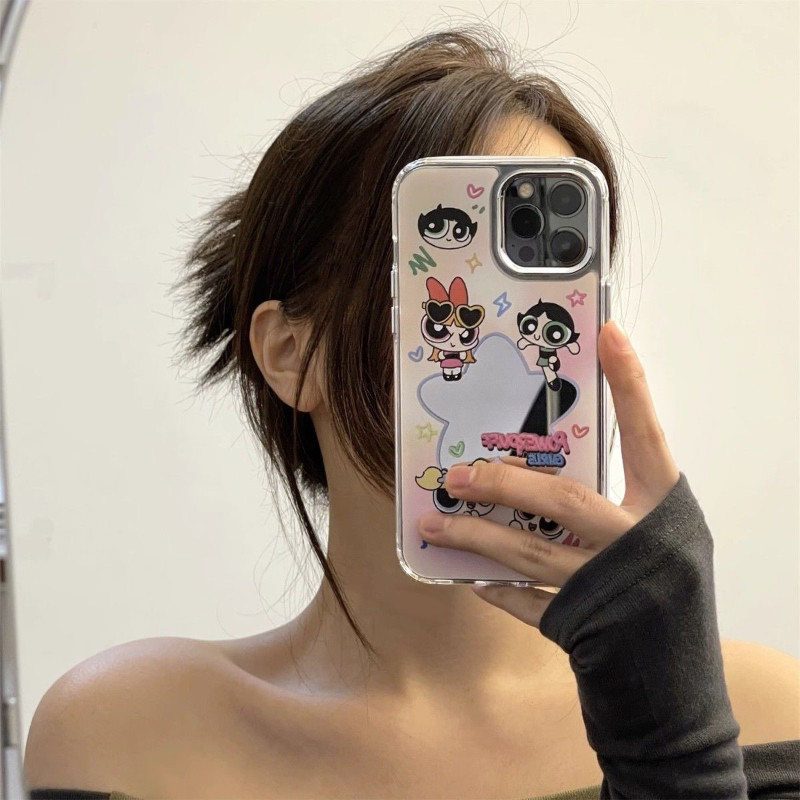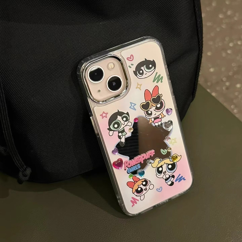 การ์ตูน Powerpuff สาวกระจกเคสโทรศัพท์สําหรับ Xiaomi 15 Ultra Civi 4 Pro Poco C75 C71 X7 M7 Pro F7 Ultra 10T Pro 5G Redmi A5 4G Turbo 4 3 A4 หมายเหตุ 14 4G ฝาครอบชุบกรอบปลอก